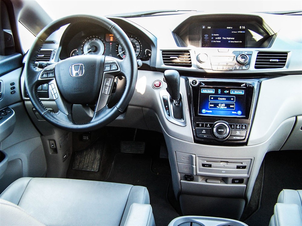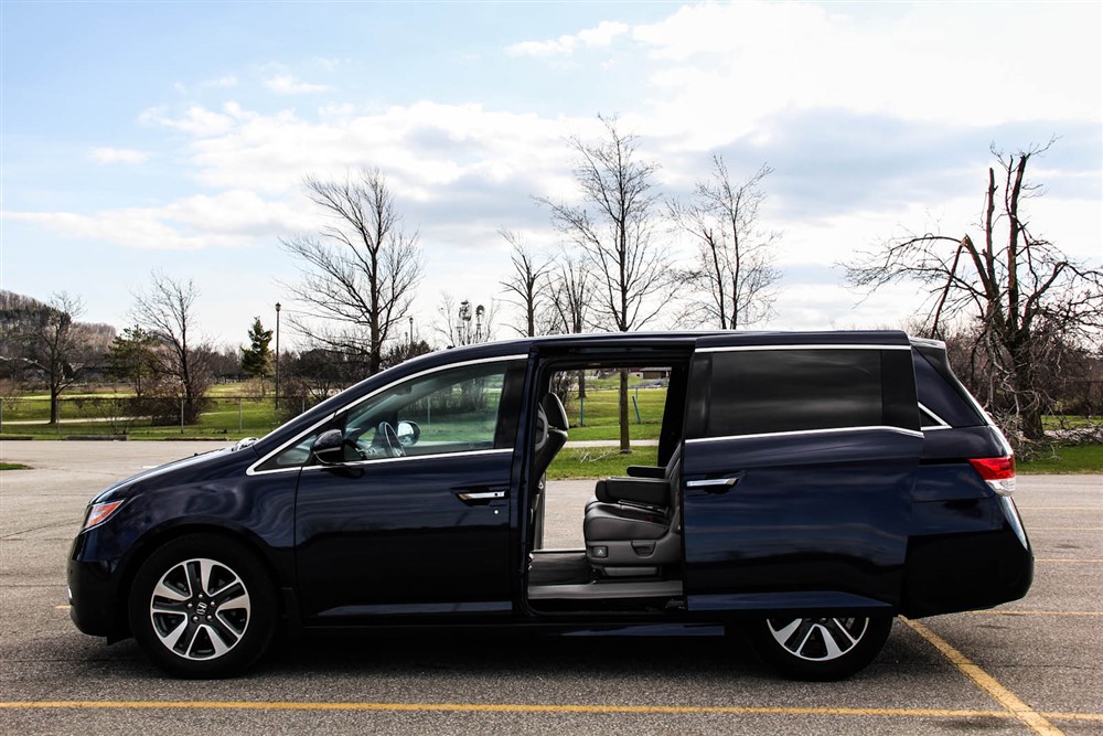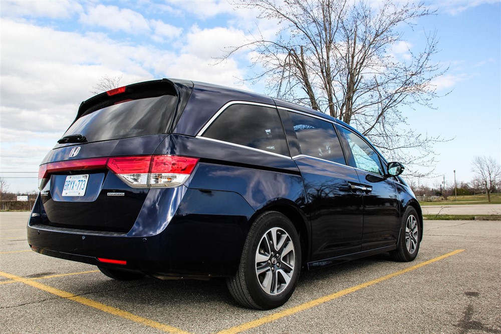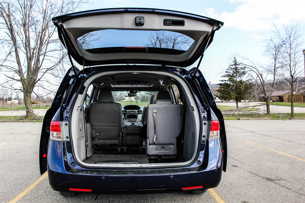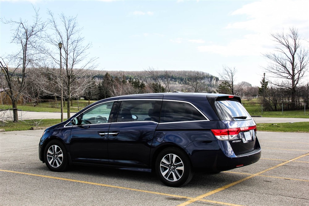 Based strictly on styling alone, the Honda Odyssey would likely be at the top of my list for consideration, simply because its exterior seems to be the most removed from the horrid square box minivans of the past. Happily, a dark blue 2014 Honda Odyssey Touring, crammed with every option available, was my tester for the week. Despite its size and tall roofline the Odyssey does look quite fluid; nice 18” alloys with charcoal inserts and projector beam xenon headlamps help to give the Odyssey a more modern and edgy appearance.