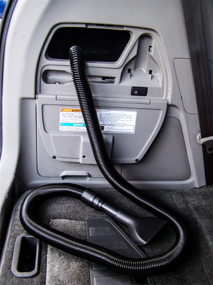 My favorite area of the Odyssey is the rear trunk area; the floor is sunken down, which is genius as it helps keep grocery bags and other items standing upright rather than spilling out all over. Additionally, this allows the third row seats to actually flip backwards and fold up right into the recessed area, providing a perfectly flat surface for loading larger cargo. Best of all, Honda has included their new “HondaVac”, a built in vacuum right in the side panel of the trunk, just pull the hose out and push a button to start vacuuming – the wife will never know you used the van to haul home dirty car parts for your latest project!