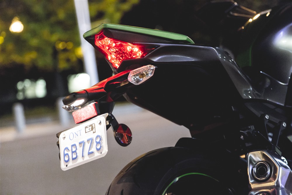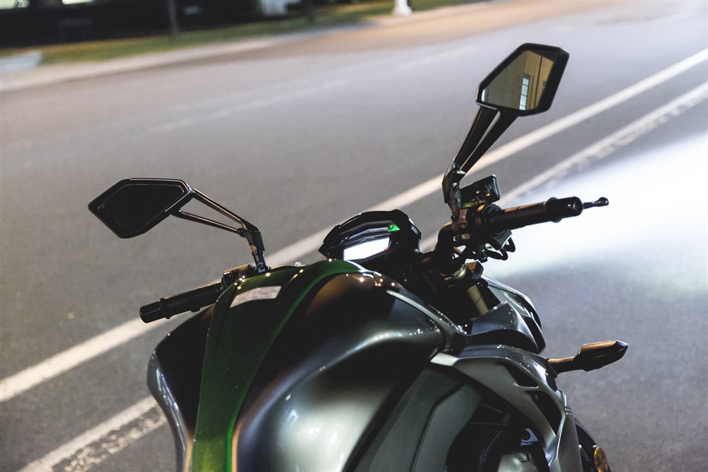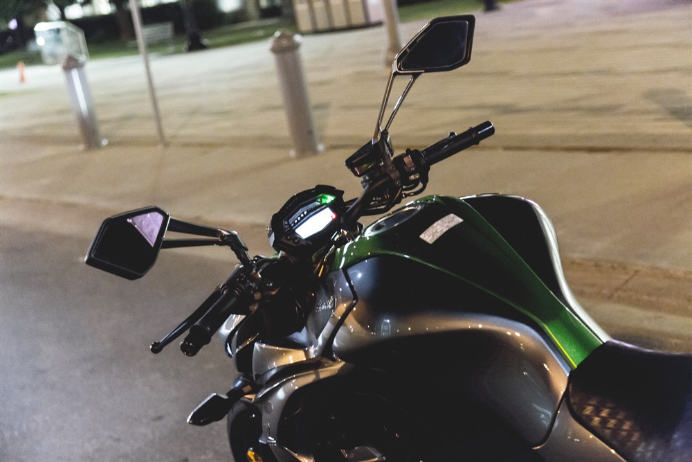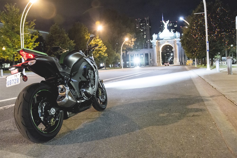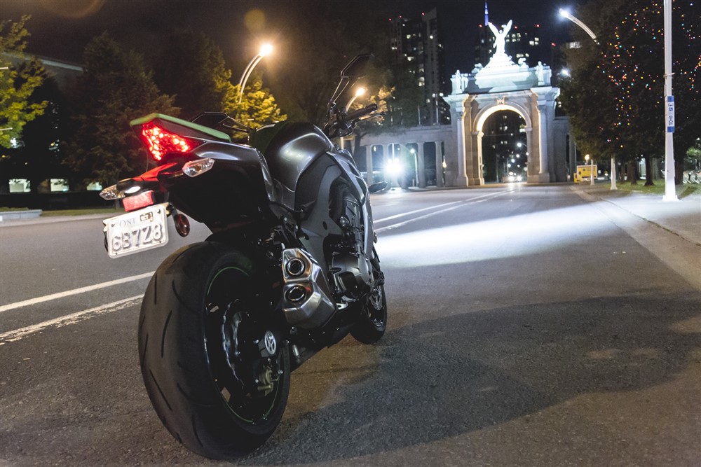 There is some engine management in the Z1000 which makes for a useful “Eco” mode. Using this and only 91-octane fuel, I observed approximately 4.0L/100km over the course of my test week. It’s not nearly as inefficient as the smaller-displacement 899 Panigale, and not too far off from the Ninja 1000. This year, the fuel tank is up to 17L as well. The instrument cluster is a bit unusual – the tachometer is a series of bars that goes vertically and then “jumps” into a horizontal LED flow past the 3,000 rpm mark. It’s a bit strange and definitely takes some getting used to at first, but I found it works well once you know what it’s trying to tell you.