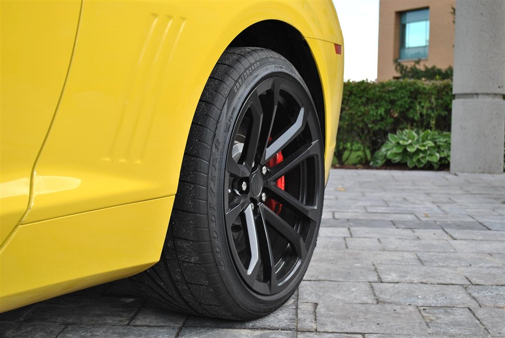 My bright yellow 1LE test car remains very true to the original intentions of the 1LE package. As a 1SS car, it is what I’d consider a base model V8 with the only two options ticked off – the dual mode performance exhaust and rear view camera. The 1LE performance package itself adds a very modest $3,675 to the cost of a base model 1SS. I say modest because this package really does add everything a performance freak would want to the car. The noteworthy additions are stunning 20” satin black rims with massive 285/35/ZR20 Goodyear Eagle F1 Supercar tires, unique front and rear spoilers, 3.91 axle ratio, high-performance suspension, and a suede-wrapped steering wheel and shifter to help you keep a grip on all the excitement this car delivers.