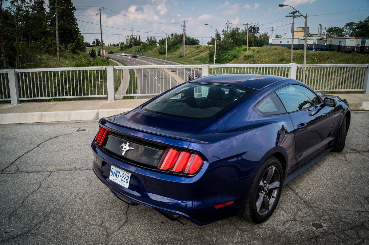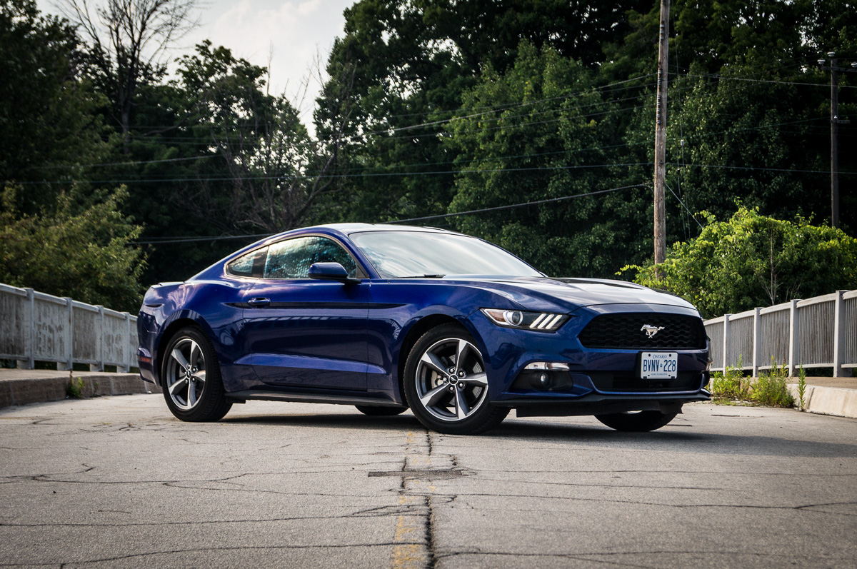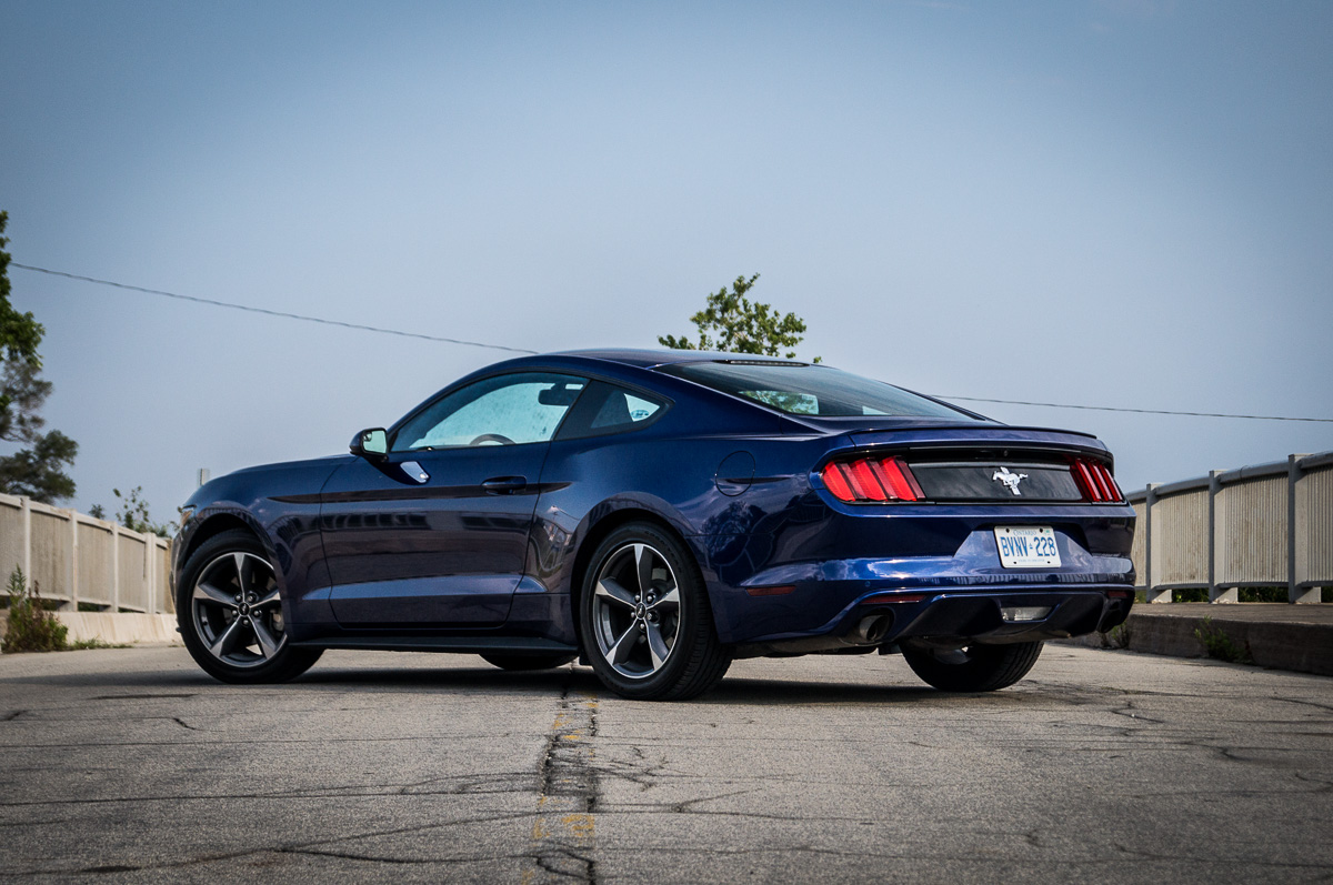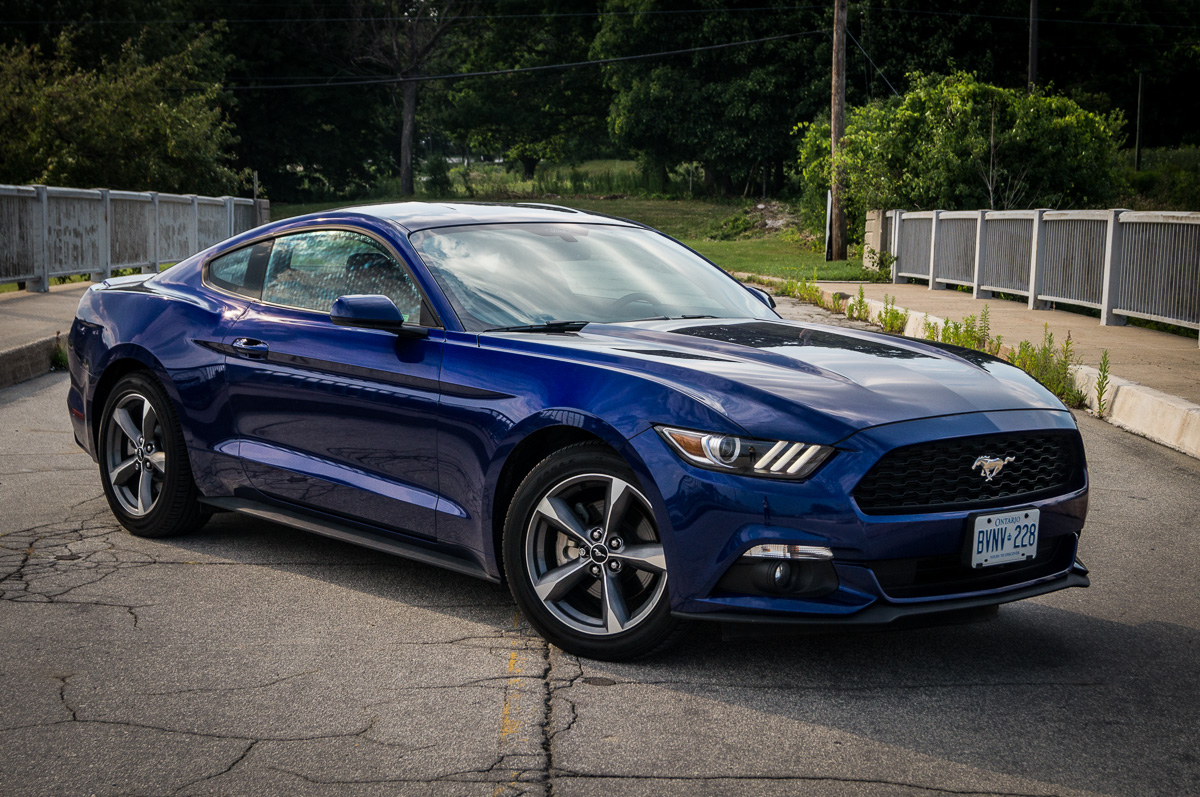 In 1964, Ford introduced the Mustang to great fanfare and strong sales in North America. Fifty years later, the sixth generation promises to take the original pony car to new heights in the ever-increasing stakes against its cross-town rivals, the Chevrolet Camaro and the Dodge Challenger. While each vehicle brings its own unique flavour into the mix, the basic formula remains the same: pack a big engine up front, send the power to the back, and give it fast and aggressive styling with two doors. There are always several powertrain options to choose from, ranging between an entry-level V6, a turbocharged four-cylinder, or a fire-breathing, tire-roasting V8. We were handed the keys to a 2015 Ford Mustang V6, finished in Deep Impact Blue, to see what the base models were all about.