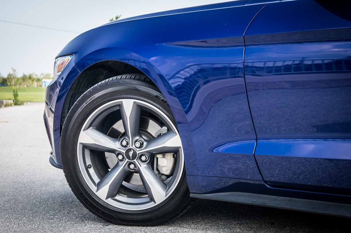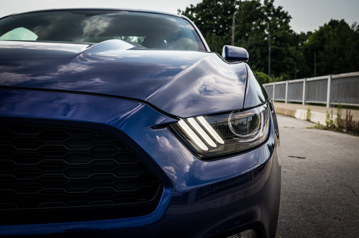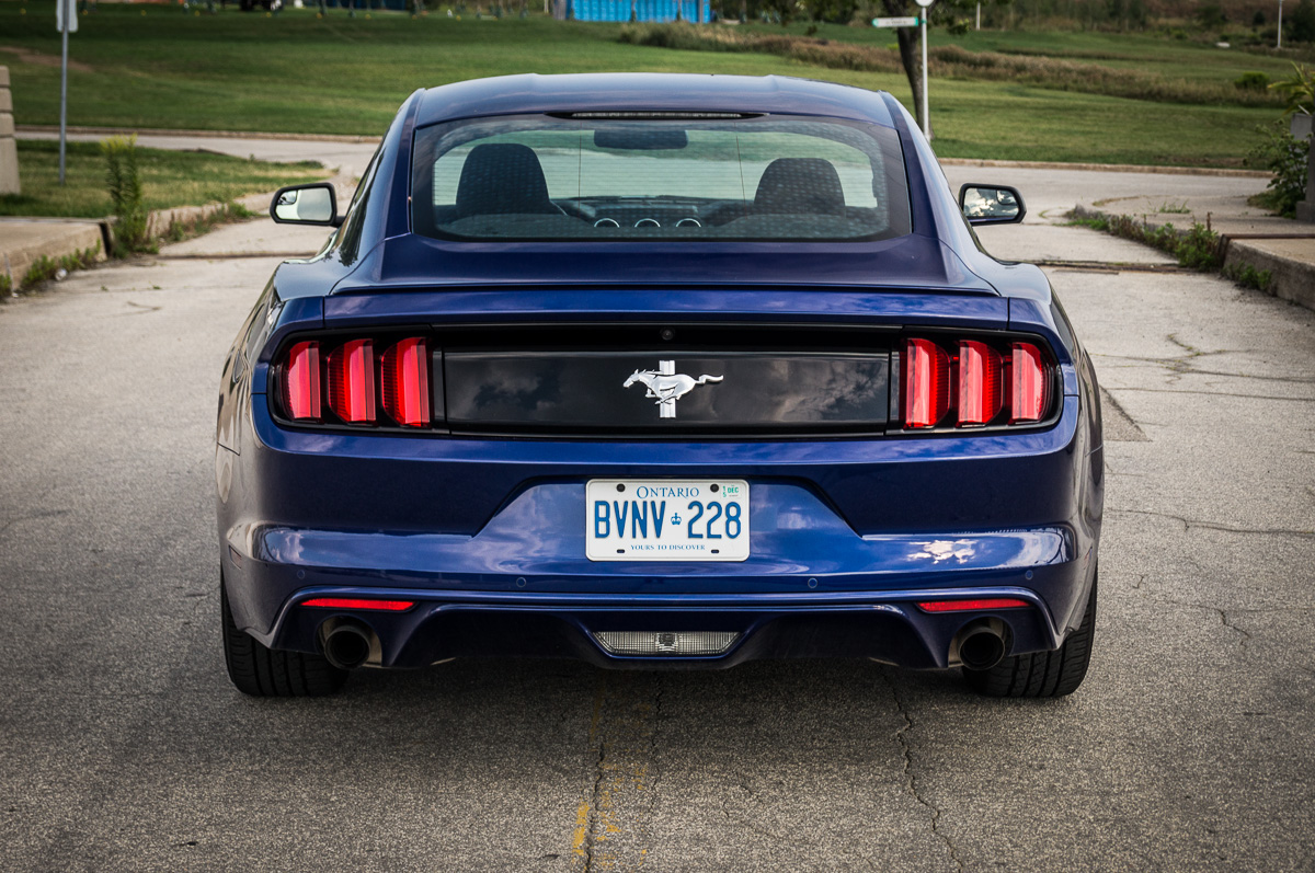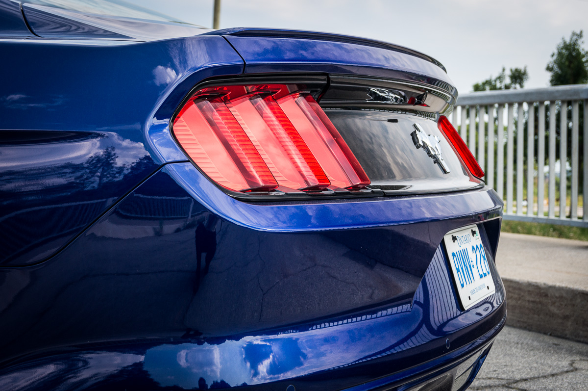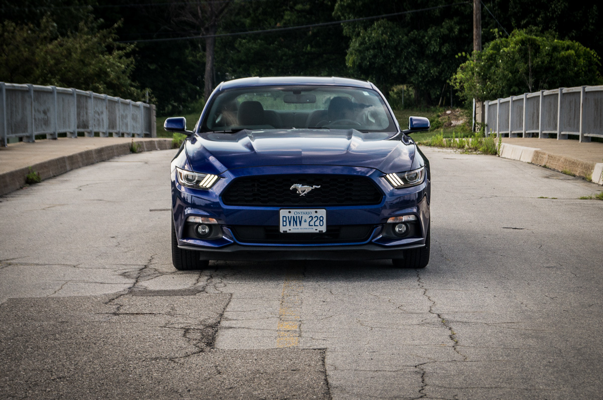 In 1964, Ford introduced the Mustang to great fanfare and strong sales in North America. Fifty years later, the sixth generation promises to take the original pony car to new heights in the ever-increasing stakes against its cross-town rivals, the Chevrolet Camaro and the Dodge Challenger. While each vehicle brings its own unique flavour into the mix, the basic formula remains the same: pack a big engine up front, send the power to the back, and give it fast and aggressive styling with two doors. There are always several powertrain options to choose from, ranging between an entry-level V6, a turbocharged four-cylinder, or a fire-breathing, tire-roasting V8. We were handed the keys to a 2015 Ford Mustang V6, finished in Deep Impact Blue, to see what the base models were all about.