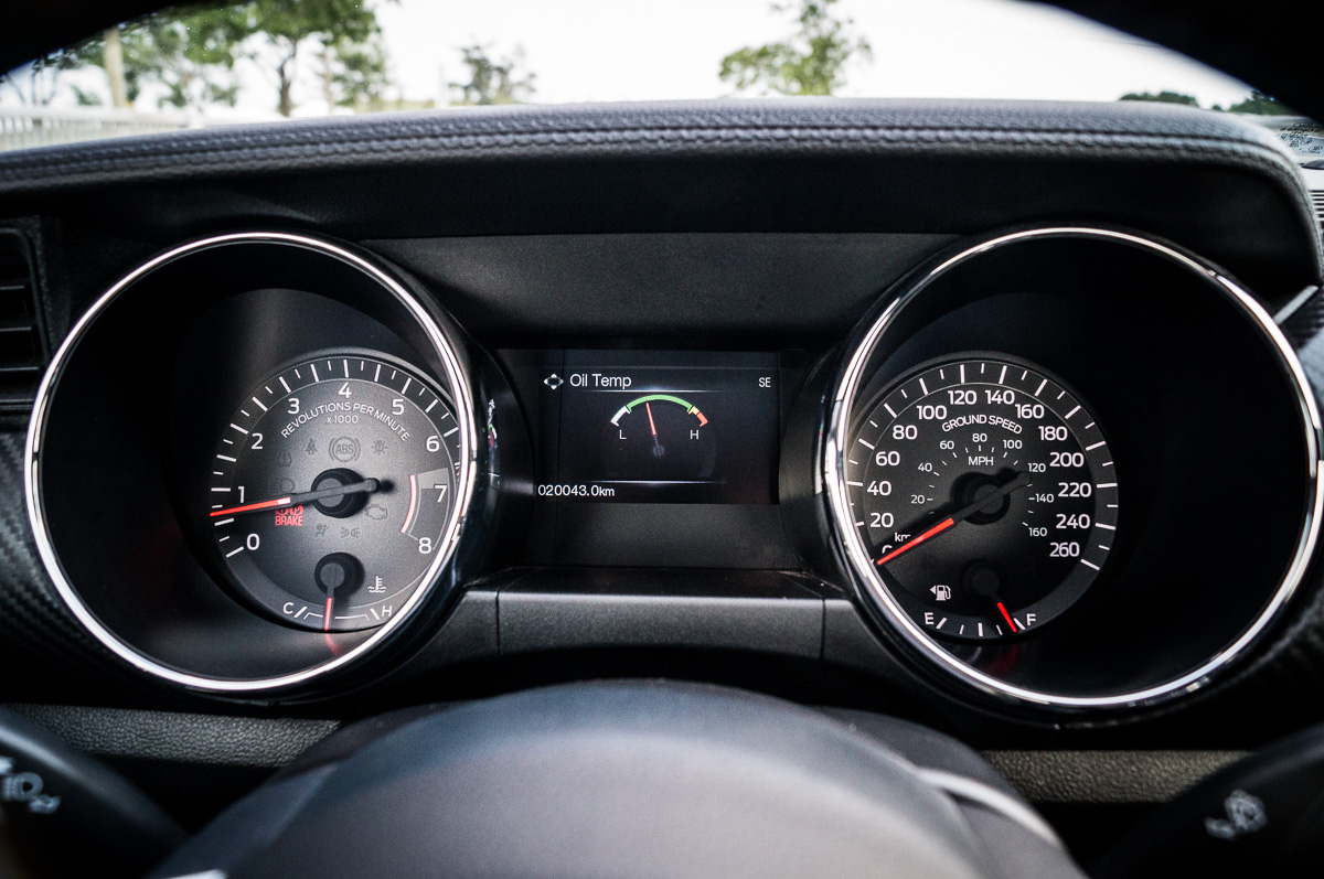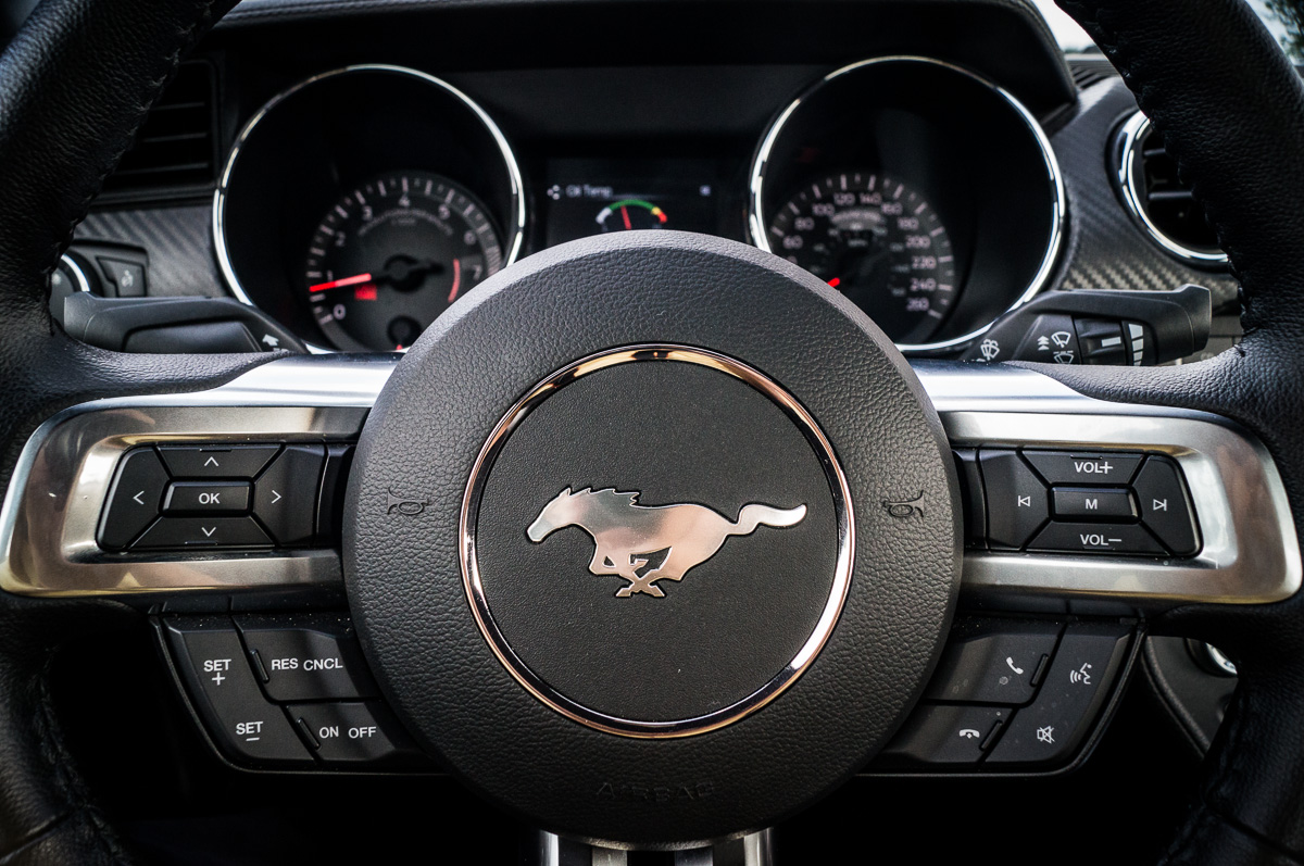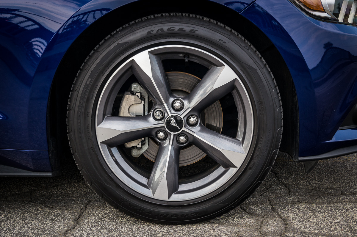 Even so, the Mustang remains comfortable enough to drive every day of the week. When paired with the 18” aluminum alloy wheels, the 235-section Goodyear performance all-season tires make the Mustang a decent dance partner when at 8/10ths. However, if you push any harder, you begin to feel the need for a more aggressive setup. The Premium package available on 2.3L EcoBoost and 5.0L GT models solves this problem with unique chassis tuning, bigger brakes, and stiffer suspension, among other things.