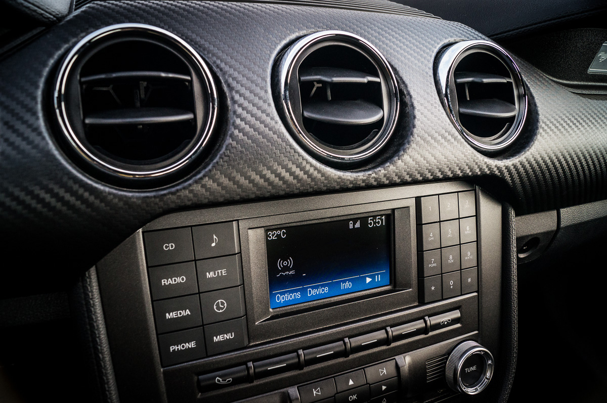 Available in 2+2 coupe or convertible form, the base V6 represents the cheapest way to get into a Mustang. Even so, this hasn’t resulted in a cheapened and de-contented car, both inside and out. The interior, while full of dark gray, is well constructed with high quality switchgear and good ergonomics. Ford’s SYNC communications and entertainment system makes another appearance, and while controversial in many circles, the non-MyFordTouch version of infotainment is simpler, creating fewer chances for things to go awry. To make selections, the 4.2” screen in the centre stack relies on four radio buttons, combined with four directional buttons. Six speakers provide ample sound quality for most peoples’ needs, and the V6 makes do with single-zone manual climate control. Push-button start with a proximity key and a six-way power driver’s seat round out the mix.
