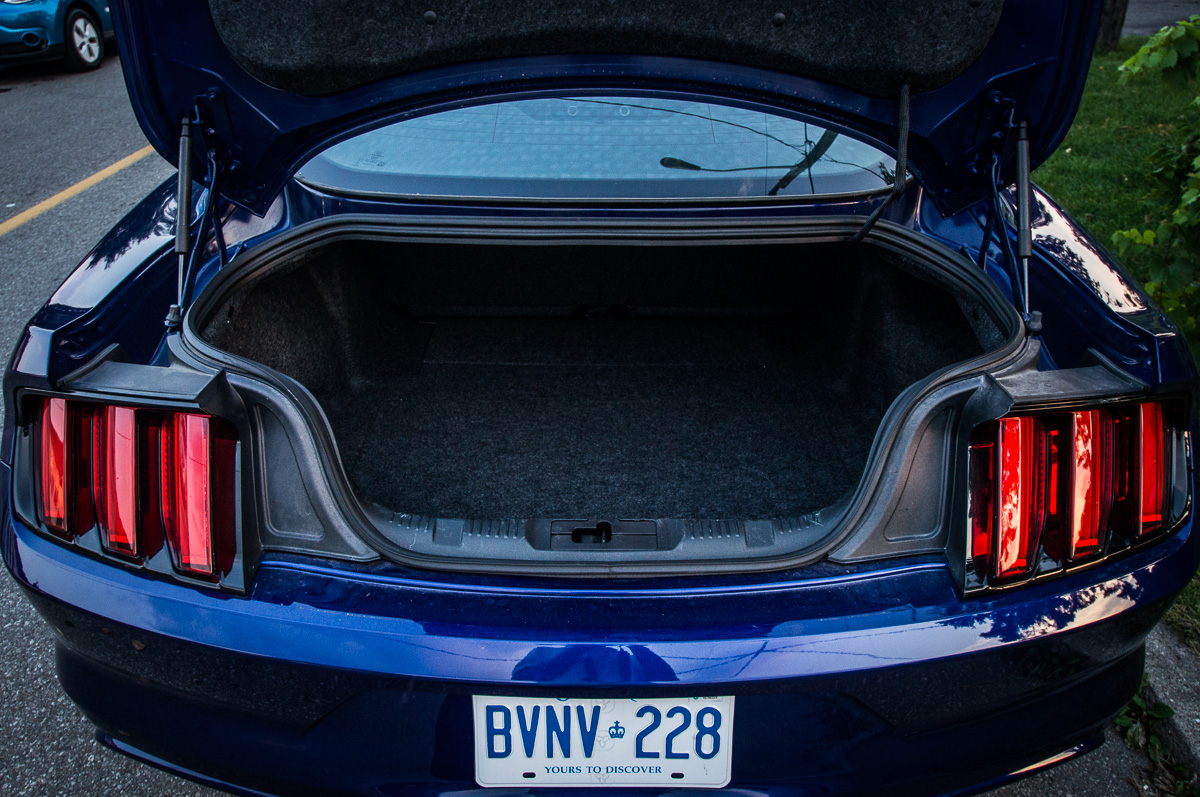 For those seeking fuel economy gains, the 3.7L V6 will be a great choice compared to the 5.0L V8 in the GT trim. The 2.3L EcoBoost is still the best fuel miser of the group, provided you refrain from driving it with a lead foot. The premium fuel recommendation (not requirement) also hurts the four’s advantage. Ford rates the V6 at 13.5 L/100km in the city, and 8.3 L/100km on the highway (the EcoBoost is rated for 10.6 L/100km city and 7.5 L/100km highway). Actual observed test fuel economy was an impressive 9.8 L/100km over 1,000km of mixed driving, which included both the congested streets of Toronto, and the curvy 500-series secondary highways of Eastern Ontario.