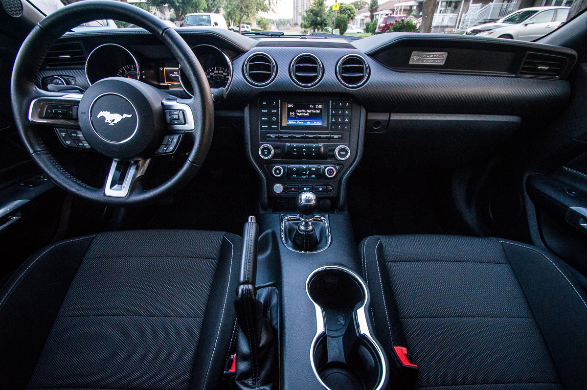 While it doesn’t quite provide the soundtrack of the beastly 435-hp 5.0L V8, the 3.7L lets out a masculine snarl that will satisfy most drivers, particularly above 4,000 rpm. Compared to the latest contender in the Mustang powertrain stable – the 2.3L EcoBoost turbo four cylinder – the V6 has slightly lower output than the EcoBoost’s 310-hp, but is smoother sounding and doesn’t feel as coarse through the rev range. For those looking for a more luxurious and premium feel, the V6 may be for you. Additionally, the V6 happily accepts regular 87 octane fuel, whereas the EcoBoost recommends premium. Unfortunately, the V6 is not available with the performance packages that offer larger brakes, wheels, and improved suspension tuning that bring out the most of the Mustang.