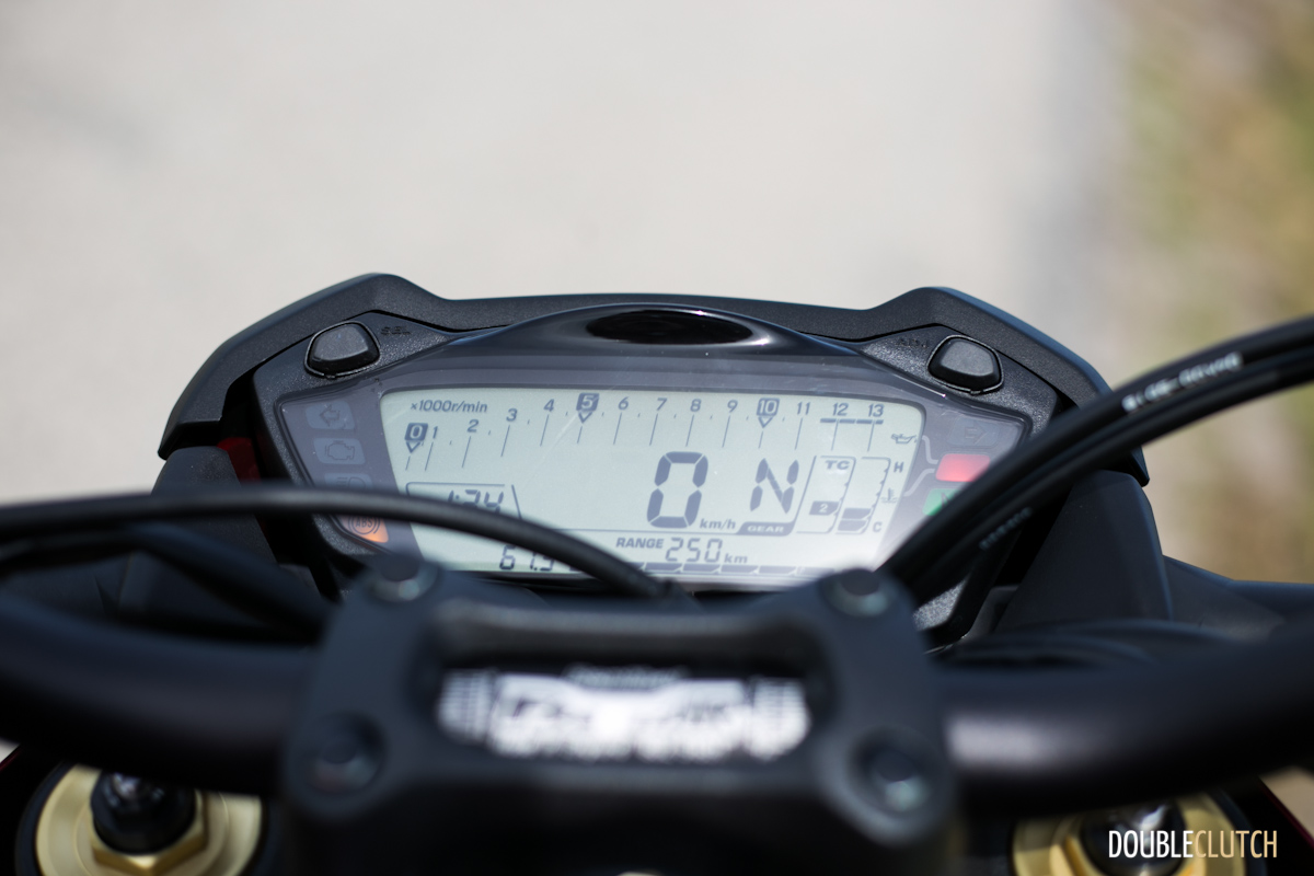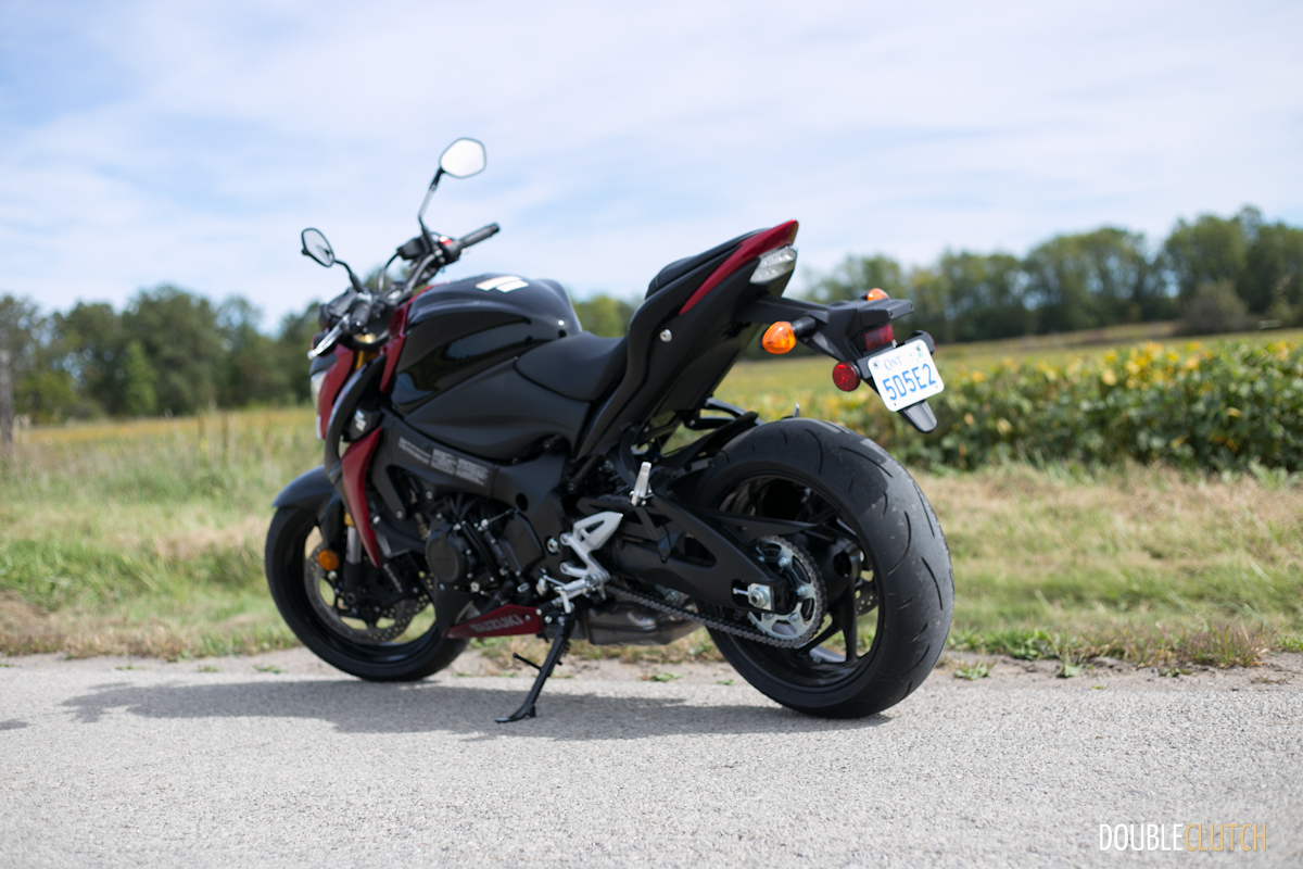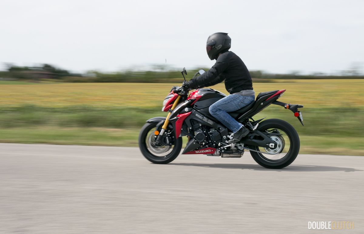 This was made even more apparent when I swapped bikes with my brother and his ’14 Aprillia Tuono whose fueling is unbelievably precise, allowing the rider to more confidently man-handle the considerably more powerful Italian bike. But then, considering the thousands of dollars more you need to spend on one of the fancy Euro naked bikes (take your pick from Tuono, Monster 1200 or S1000R), a few concessions should be expected compared to the $12,299 CDN. And really, there aren’t many concessions. The GSX-S is capable, light and decently comfortable for moderate touring duties. The styling varies between flamboyant in blue to stealthy in charcoal, or the vibrant and sporty black and red of our press bike.