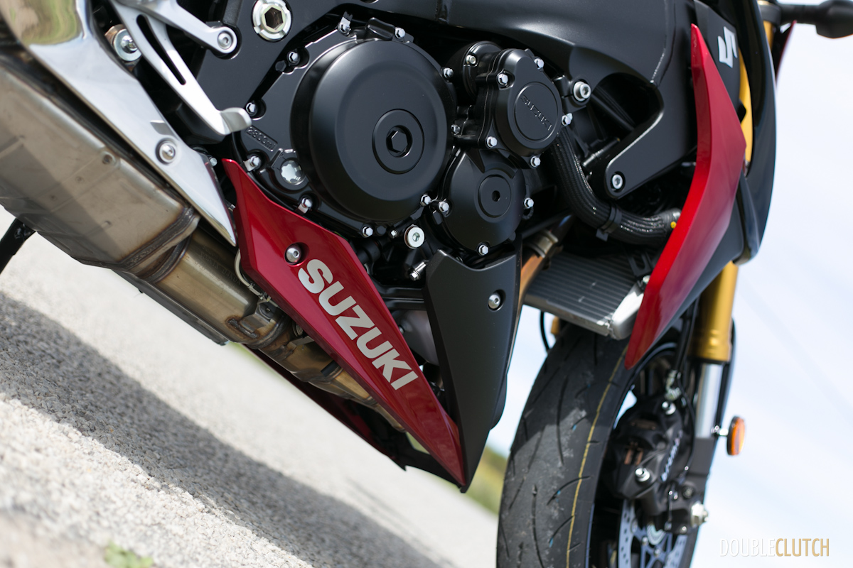 But back to that engine for a moment. Starting with the 2005 generation Gixxer 1000 K5 motor with its longer stroke than the current GSX-R1000 engine means greater responsiveness. In updating this engine, Suzuki tossed in some lighter pistons and a new camshaft among other fixes to the airbox and exhaust (which sounds really good, by the way). All this amounts to a ripping and smooth power delivery (145 horsepower at 10,000 rpms and 78.2 lb-ft. of torque at 9,500) to the chain via a quick-shifting, narrowly-spaced 6-speed.