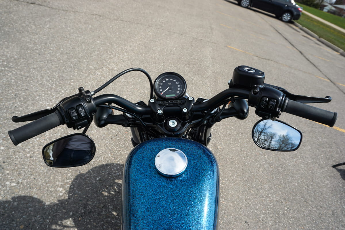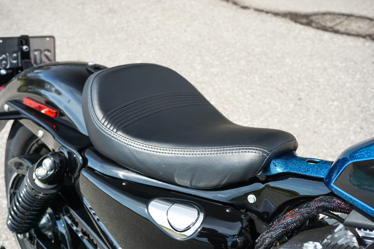 Another cause of frustration was the lack of spring-loaded pegs. If you put your foot down at a light, and accidentally bring up a footpeg on the way up, it’ll stay there. It won’t redeploy, you have to manually kick it back into place. The ride itself was pleasant. My body was rather pleased with the plush seat, and the plain rubber grips feel comfortable as well. The Sportster’s 1202cc V-twin pulls nicely off the line, its throttle response impeccably smooth and steady. The shifter has a satisfying clunk to it as you move through the gears. That being said, neutral is a horrid pain to find. At some points, I legitimately just got frustrated and gave up, holding it in gear instead.