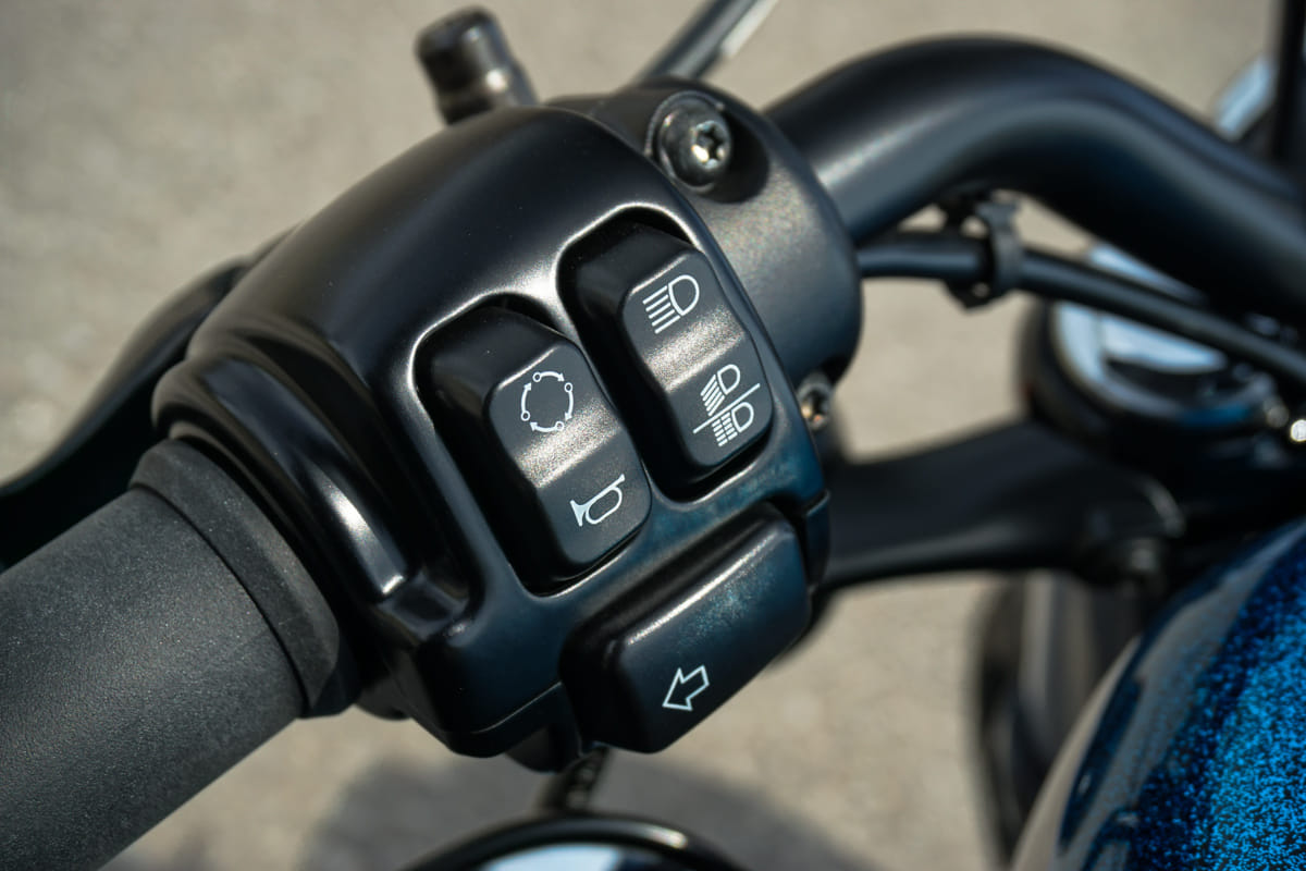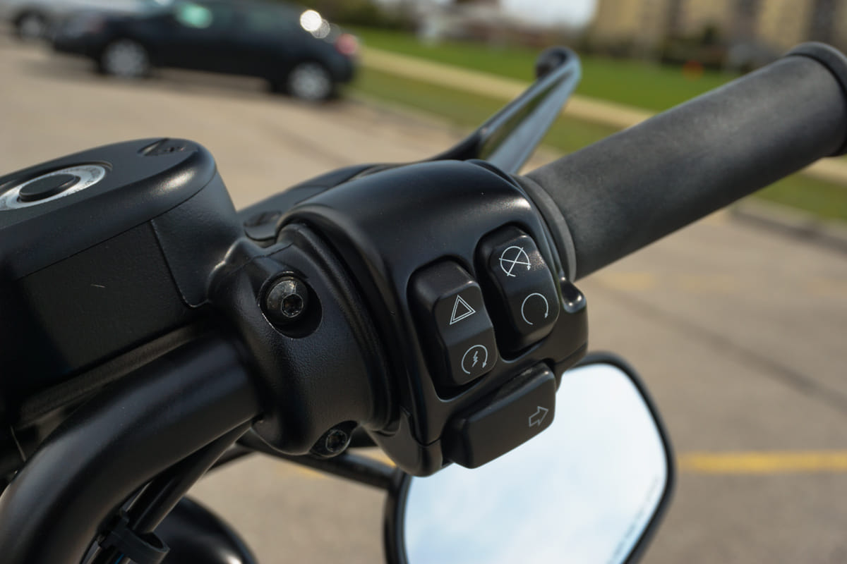 The instrument cluster looks great. The buttons are well spaced, the speedometer looks clean, and the digital tachometer with gear indicator is rather neat. Problems arise with the indicators though. It is worth noting that this is a source of frustration on every Harley-Davidson product currently available. The left indicator is by the left hand, and the right indicator is by the right hand. Why? Why would you do this? If I’m braking, blipping the throttle for rev-matches, and I need to indicate a right turn, my right hand is barely touching the handlebar anymore. Even if I’m simply rolling off the throttle and indicating a right turn, I might accidentally blip the throttle a little bit while I’m reaching for the indicator. Furthermore, the buttons have little to no feedback to let you know that you’ve turned off your signals.
