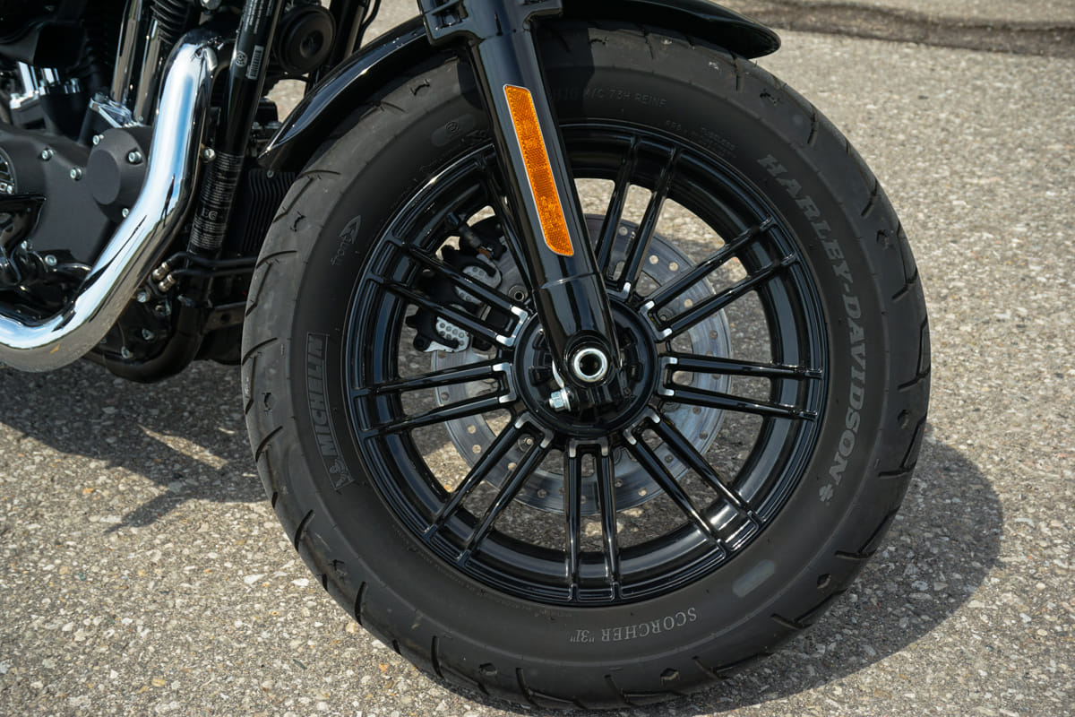 Harley-Davidson does an incredible job of making the rider feel amazing. When I ride a Harley, I feel, as cheesy as this mind sound, liberated. I spent the last week on the 2016 Harley-Davidson Forty-Eight. Every time I sat in the saddle I simply felt great. Perhaps it’s the design of the bike; the classic Sportster look works well. There is absolutely no part of this motorcycle that looks cheaply made. It’s meticulously detailed, with nine Harley badges on the bike to remind you what you’re riding, all the time. The front tire, as fat as it can be, looks a lot better on this model than in previous years as a result of the switch to cast wheels (versus spokes). 8 pounds of weight loss and a more aesthetically-pleasing front end are positive symptoms of this.