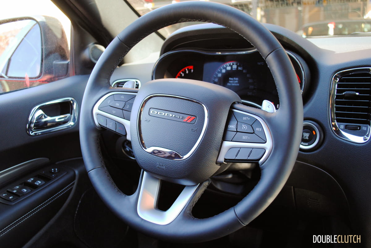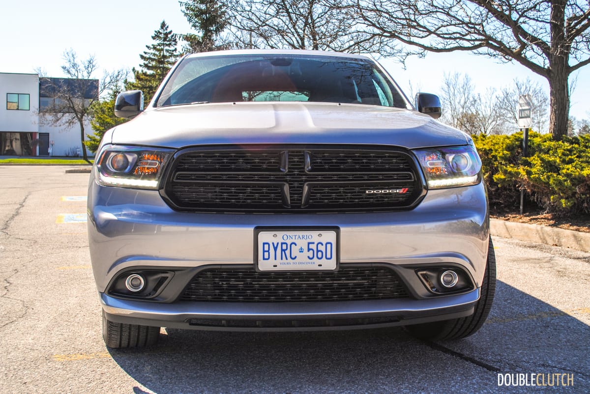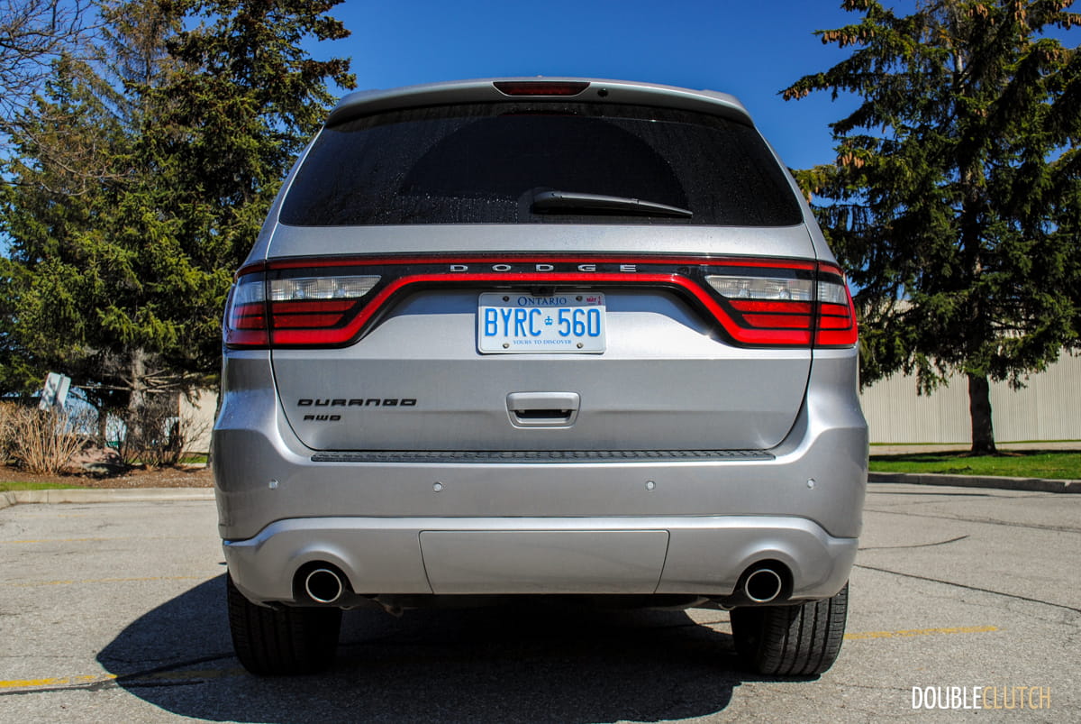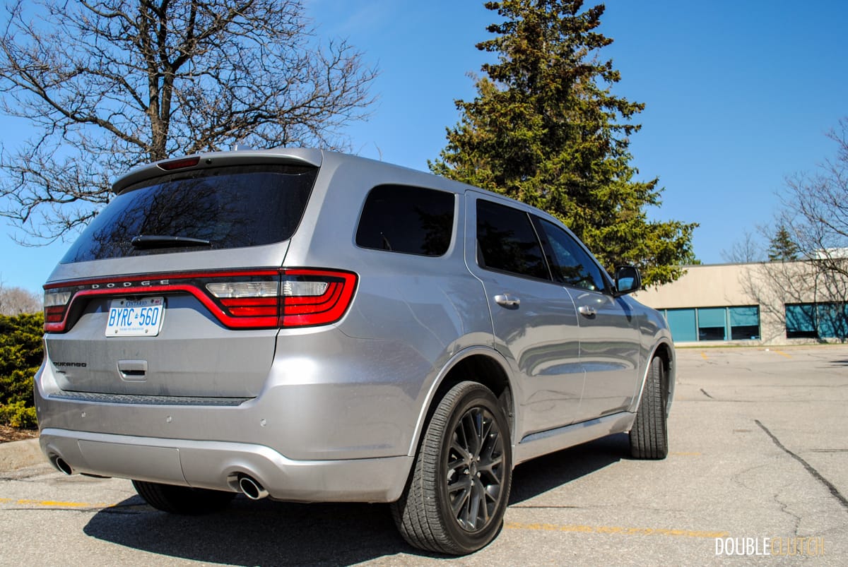 The standard Durango has a pretty imposing look to start with, but when you add the Blacktop package, it starts to look a lot more sinister. For $1,595, this package adds some great-looking gloss black 20” wheels, LED running lamps, gloss black grill, badging and mirrors, unique front and rear fascia, and dual exhaust tips. Combine all of this with the Billet Metallic paint on my tester and you have a pretty mean family hauler. Its sheer size, the prominent racetrack-style tail lamps, and angry front end make the Durango pretty difficult to miss on the road. This also means nobody is going to confuse it with your neighbour’s crossover.