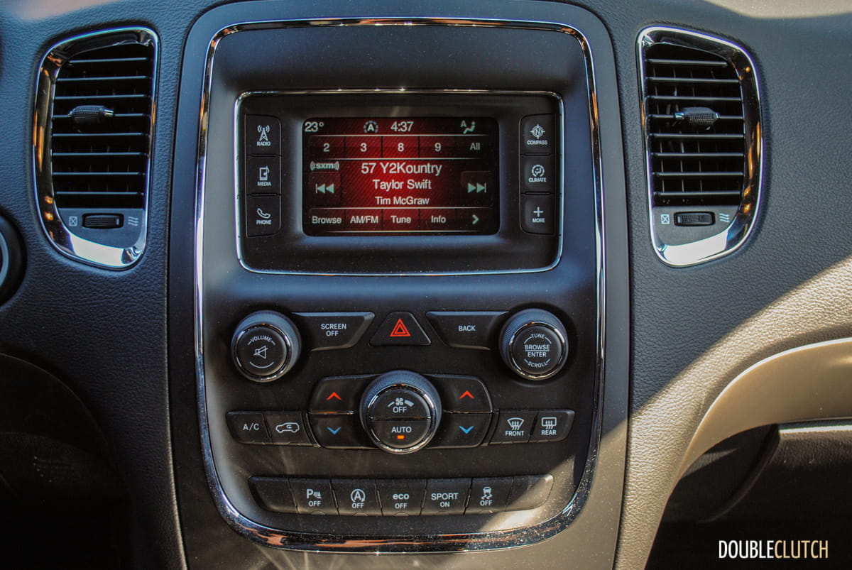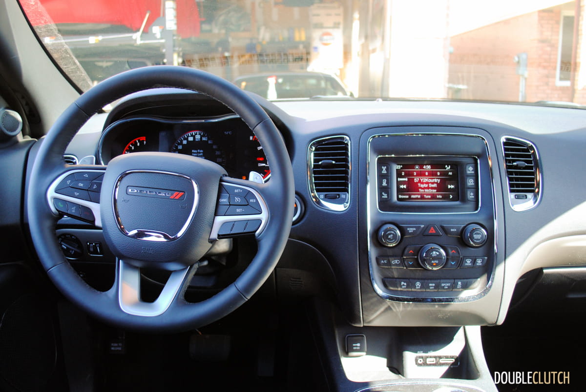 The other big bonus with the Blacktop package is that it comes with some great leather faced seats with well-executed suede inserts. The seats are heated and feel absolutely great – it’s a shame only the driver’s side has power adjustment on this one. The money on the Blacktop appearance package is definitely money well spent, and even though my tester is a basic SXT you’d never know by looking at it. That’s not to say that the Durango is cheap though – the SXT starts at $42,395 and when you add the Blacktop package, and the Popular Equipment group (heated seats, steering wheel and rear-view camera) my tester came in just over $45,000.