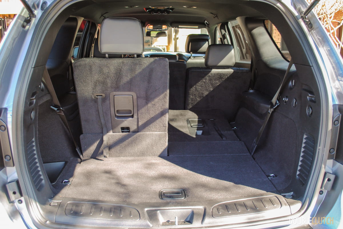 The fancy seats aside, the rest of the interior is pretty standard fare for Dodge. There is lots of matte-finish black plastic, loads and loads of space, and of course the exceptional UConnect infotainment system on board. Space is the name of the game inside the Durango and there is plenty of it wherever you look. Up front I found plenty of trays, cubbies and compartments to keep all my “daily carry” items, and both second and third rows offer plenty of head and legroom. I’d rank the third row near the top of its class for usability as the Durango’s flat floor allows for decent space. The cargo area behind the third row is still decent with the seats upright. All the rear seats do fold flat opening up an expansive cargo area that will handle just about anything.
