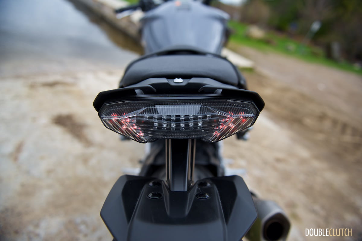 Riding position is obviously quite hunched, but I made it comfortably through a couple hours of riding with my backpack on before stopping for a break. The display is also very well done on Yamaha’s part, it handled direct sunlight without glare and had plenty of information on it, including meters for brake-pressure and acceleration/braking g-force… yet still no fuel gauge (Just twist the throttle once, you’ll forgive them). At $16,699 it’s a lot of bike for your money.