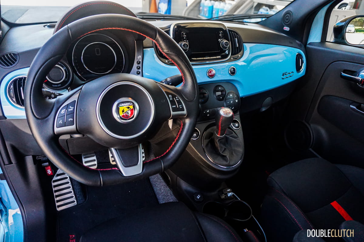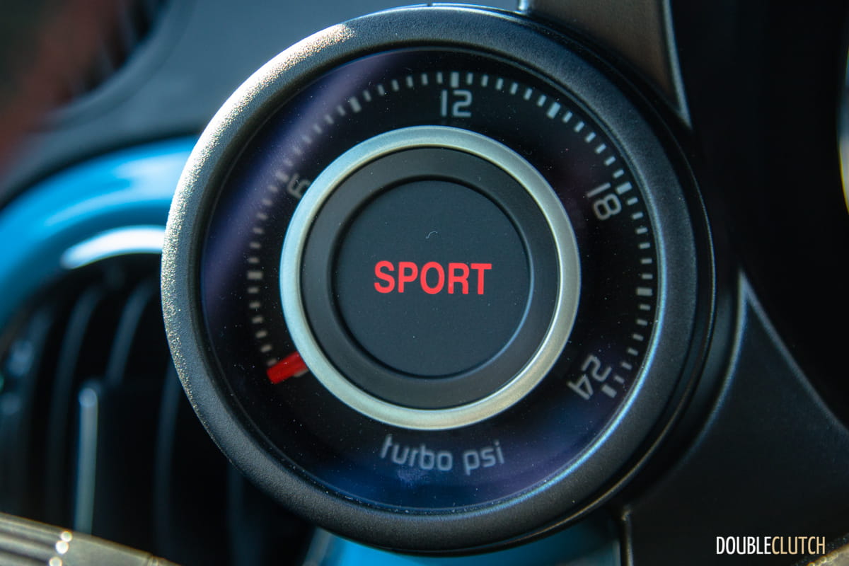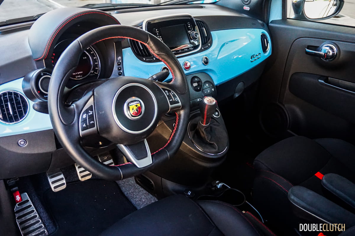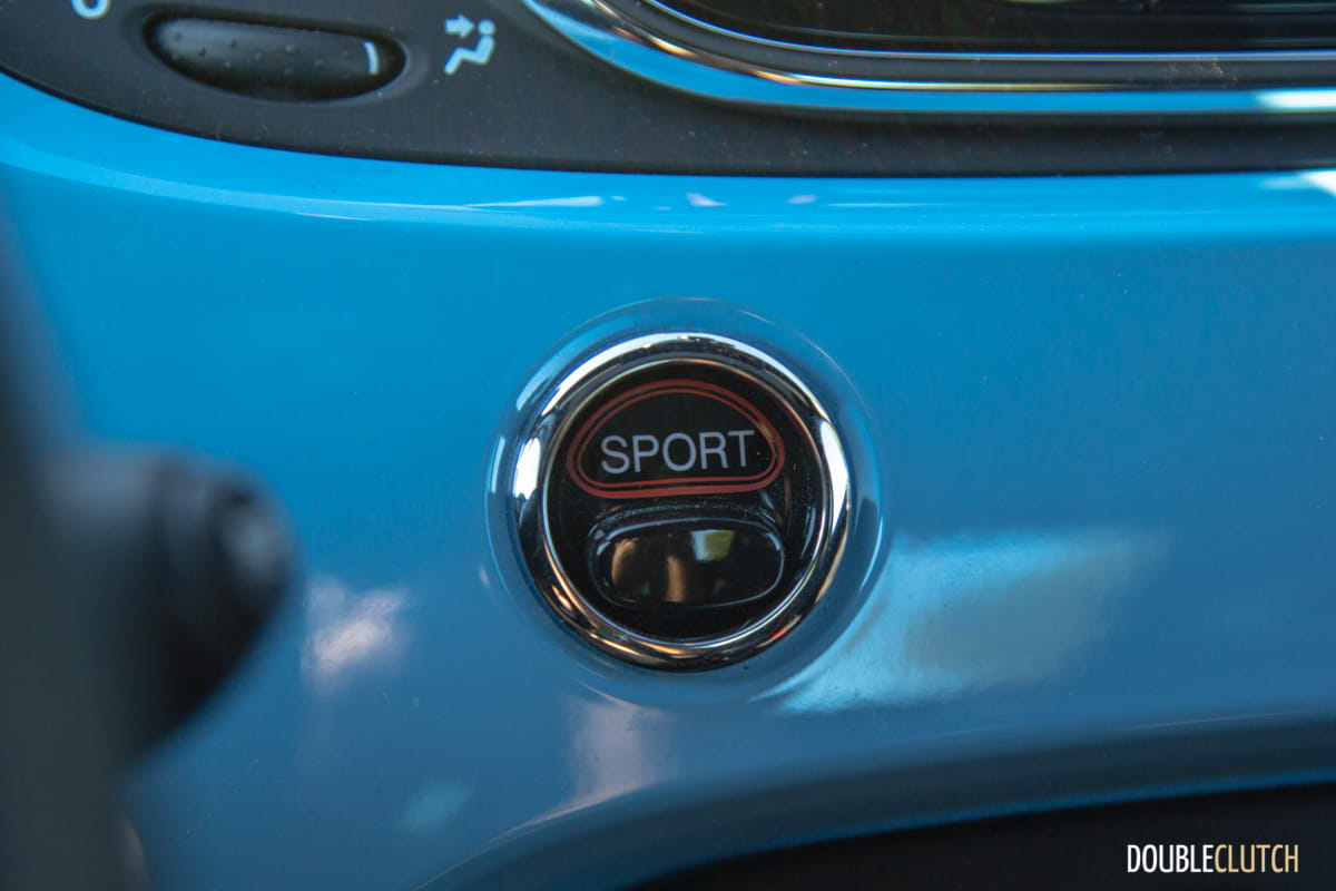 The Abarth remains powered by the same 1.4L turbocharged inline four-cylinder, a single overhead cam engine. There are plenty of vehicles currently powered by this engine, but here it’s good for 160 horsepower at 5,500RPM and 183 lb-ft of torque, available between 2,400 and 4,000RPM. On a car that weighs just over 2,500 pounds, this makes for a good amount of pep. There isn’t too much oomph on the low end, but once boost kicks in, the Abarth is a little rocketship. Enabling the “Sport” mode changes engine mapping ever so slightly and wakes the car up a bit more.