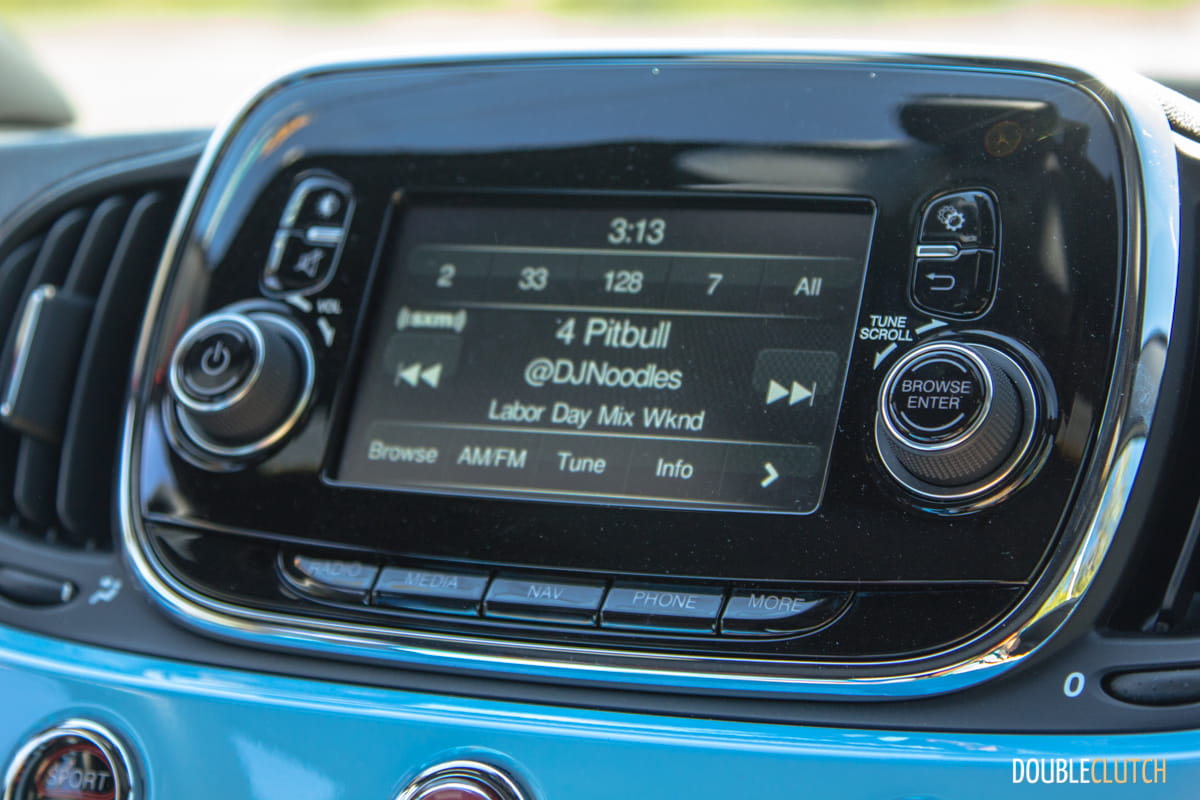On the inside, the Abarth has just as much personality as it does from the outside. My biggest issue with the model at launch was the primitive single-line stereo display, and the external TomTom navigation unit that would sit on top of the dash. The car now gets a smaller version of Chrysler’s Uconnect, with integrated navigation and a touchscreen. Playlists and albums on external devices are far easier to browse through, and the system is responsive, almost moreso than Ford’s SYNC 3 (reviewed here).