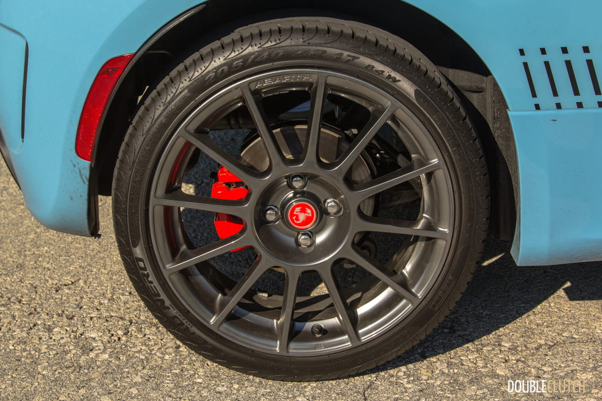 The base Abarth model starts at $26,995, which is about $3,500 more than the comparable Fiesta ST (reviewed here). Our car included the $750 Comfort & Convenience Group, which adds heated seats, automatic climate control, Sirius satellite radio, a $1,200 power sunroof, a $275 body graphic package, $375 park assist, Beats Audio system with GPS navigation, and 17” forged aluminum wheels. The total sticker went just over the $34,000 mark, which is a considerable sum of money when compared to the competition.