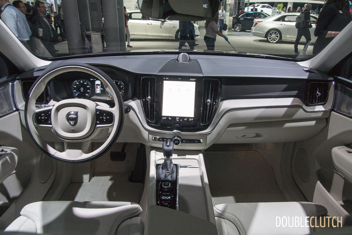 If you’re thinking the XC60 is essentially an XC90 at about 66% scale, you’d be more or less right. What’s important is that it is built on the excellent Volvo “SPA” modular product platform. This means that it shares a good deal of engineering with its bigger brother, but in a smaller, two-row, five-passenger body. Hot styling cues such as the Thor’s Hammer LED daytime running lights make another appearance, though the side profile doesn’t stray far from the usual two-box layout common to essentially all crossovers. Out back, the taillight design borrows from the V60 (reviewed here) and V60 Cross Country, rather than the XC90. Bottom line, the new XC60 is a sharp-looking CUV that fits right in with the rest of today’s Volvo family.