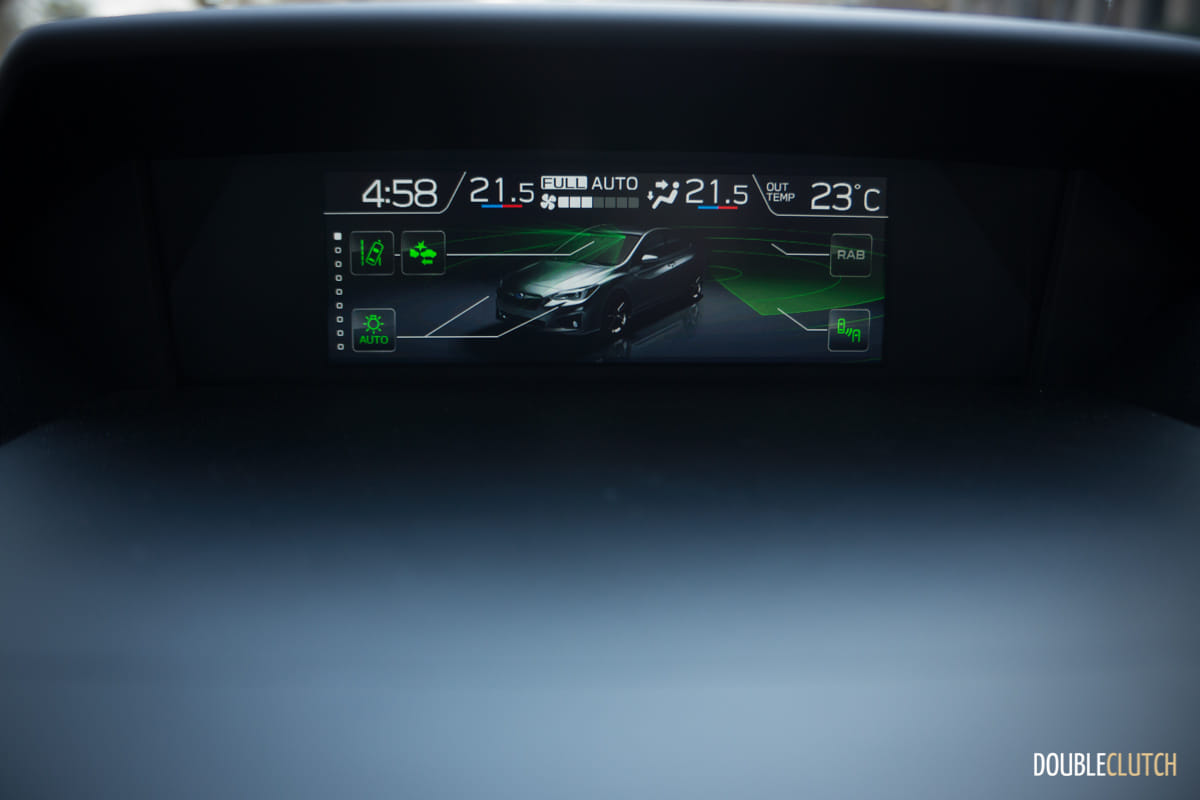 There is also screen in the instrument gauge cluster that provides more information. The steering wheel buttons control many of these screens and the driver has quite a large number of buttons to choose from. There is indeed such as a thing as too many buttons on a steering wheel, and the Impreza is in danger of being accused of this. Continuing Subaru’s trend to keep the driver comfortable, our tester had leather seats, which were well made and supportive even though they didn’t include adjustable lumbar support.