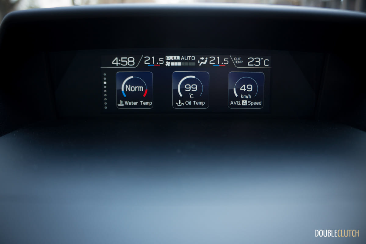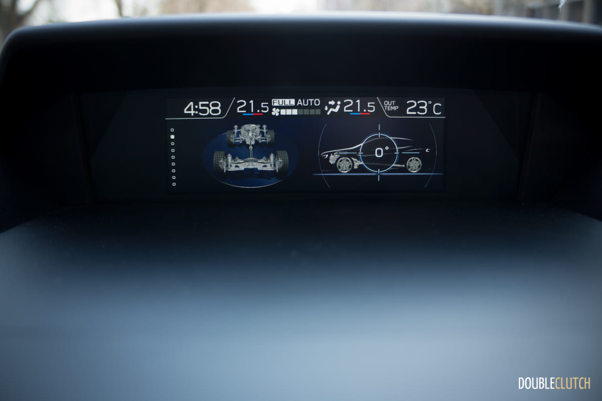 Given that spring is finally upon us, we didn’t have a chance to test the AWD in the snow, but even though the Symmetrical AWD in the CVT model has a Electronically Controlled Multi-plate Transfer clutch instead of a Viscous Coupling center differential as can be found on the manual version, we trust that Subaru AWD will always deliver the power to the ground.