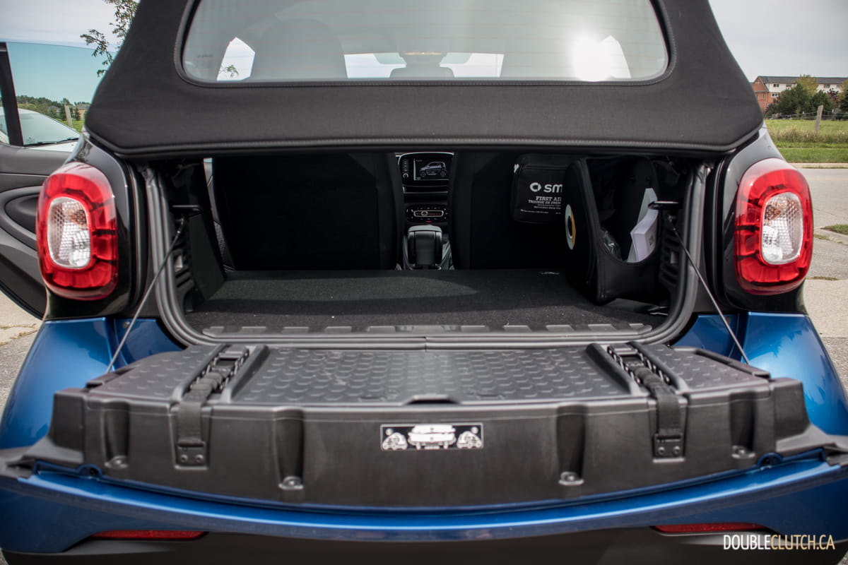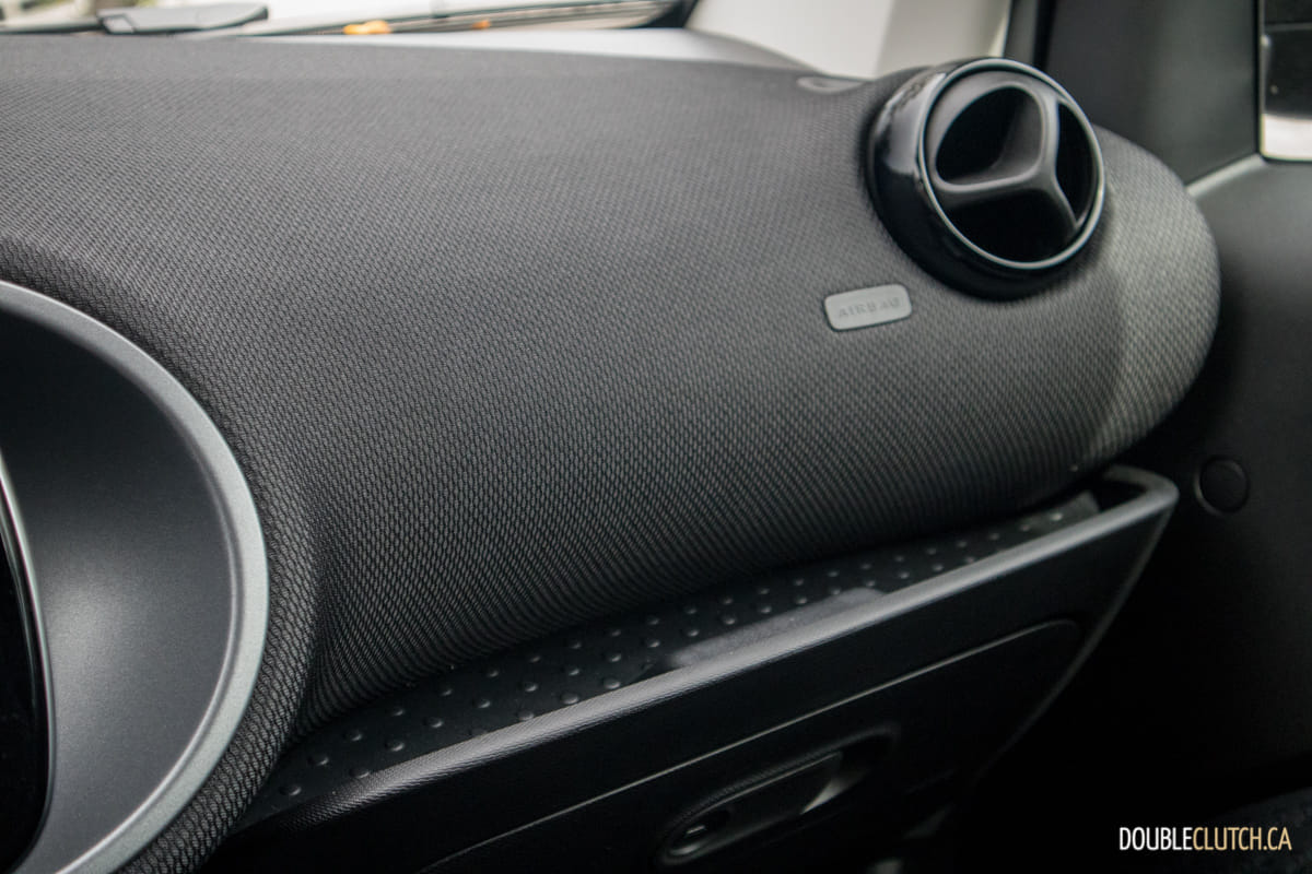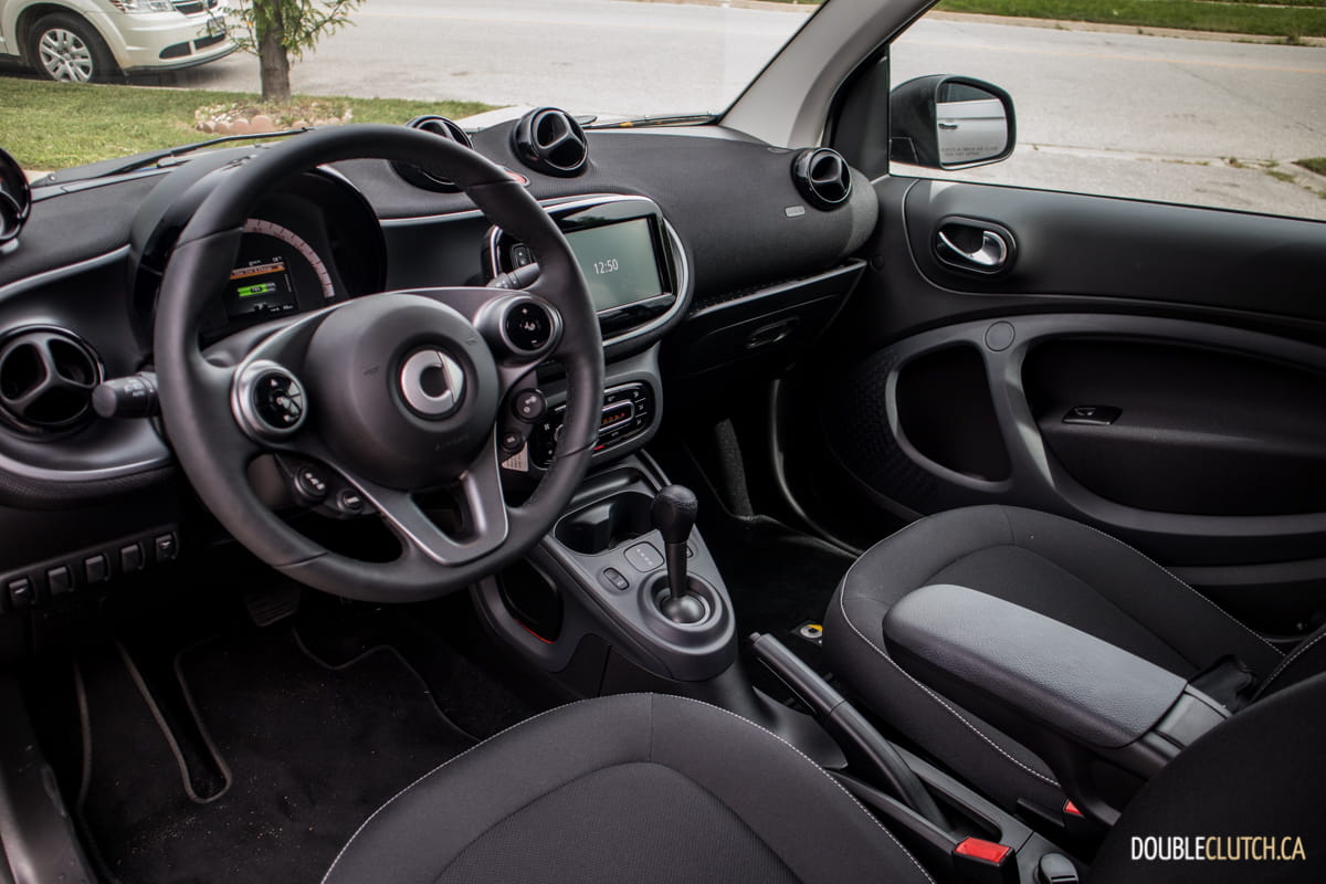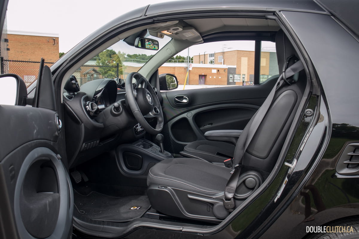 It’s not without its flaws, but first I’d like to address what really stands out positively about this car. The interior is made for two, and it’s actually very comfortable even for my taller frame. Headroom and legroom are both remarkably generous, with ample space to not feel claustrophobic. The retractable roof on the Cabriolet model tested here opens in a matter of seconds to make for an airy cabin. Our test period consisted of a cool fall weekend with favourable weather, and the open-top experience in the Smart makes the car feel even more enjoyable and cheerful.