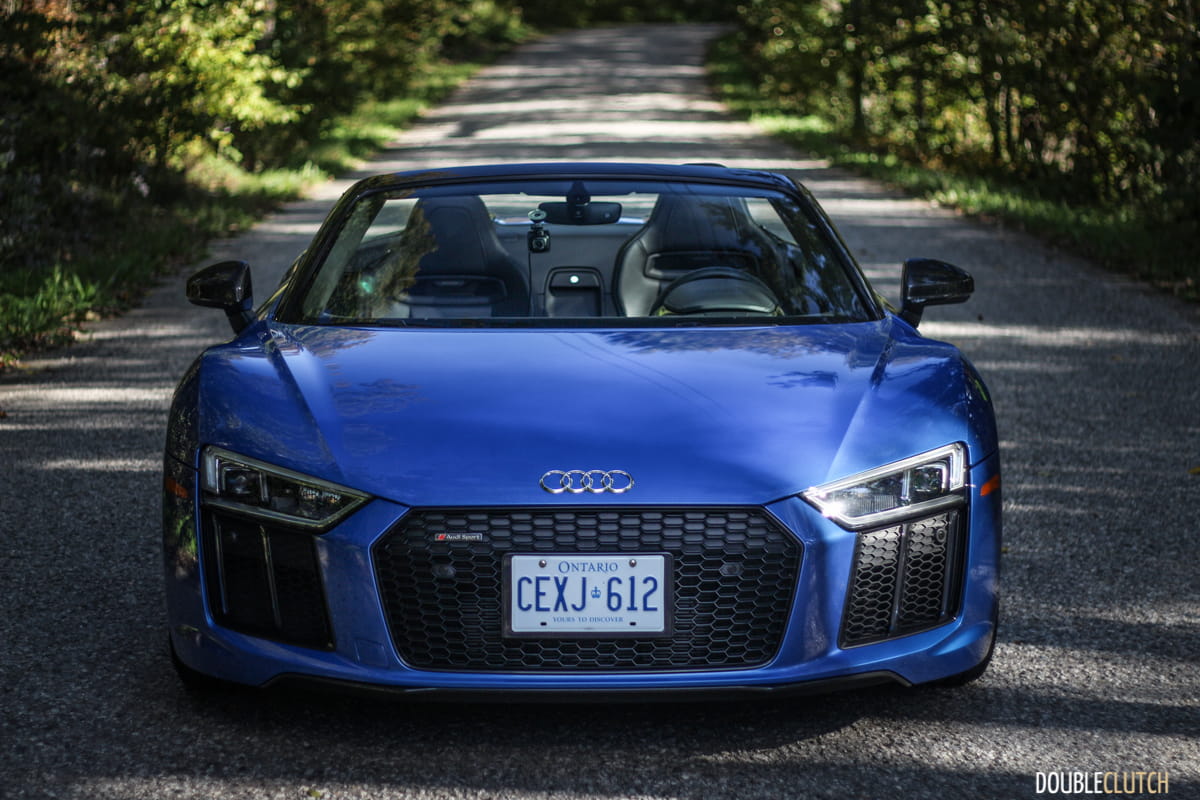 When in Spyder form, the R8 V10 Plus is about 275 pounds heavier than the regular fixed-roof model, for a total of about 3,700 pounds (slightly lighter than the standard V10 Spyder). As you drive it though, the weight is all but forgotten. The faster you go, the more this car shrinks, and it feels only mildly heavier than genuinely lightweight sports cars like the Porsche 718 Boxster (reviewed here). In V10 Plus spec, the R8 Spyder will guffaw at lesser machines as it sprints to 100km/h in 3.4 seconds flat. The quattro all-wheel-drive system means launches are hard and fast, and this leads us to believe that Audi Canada’s acceleration estimate may be conservative.