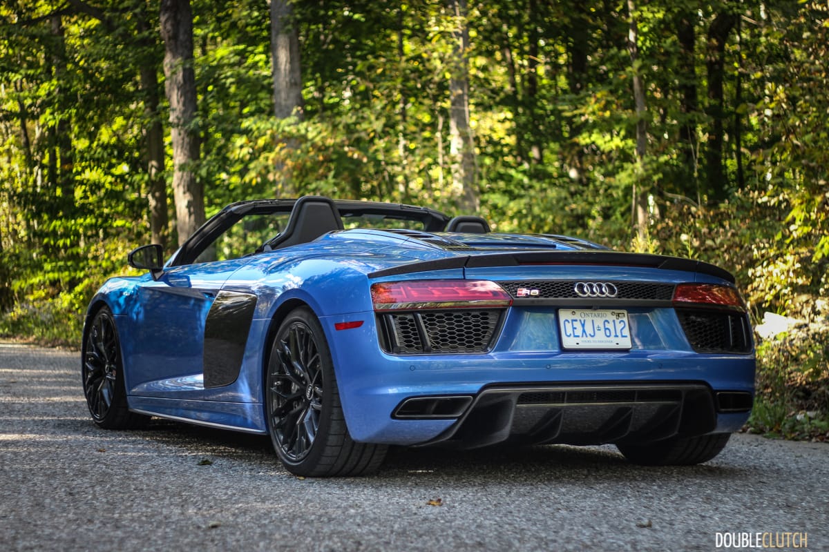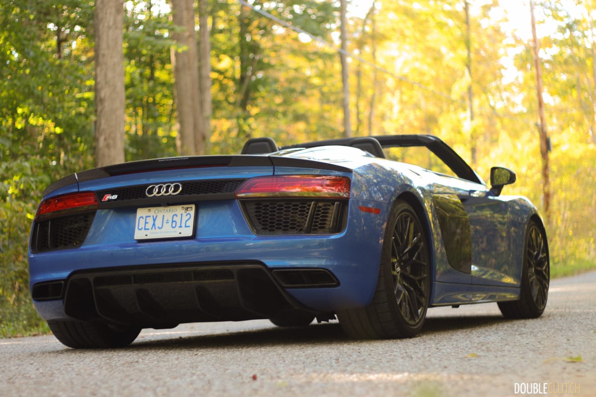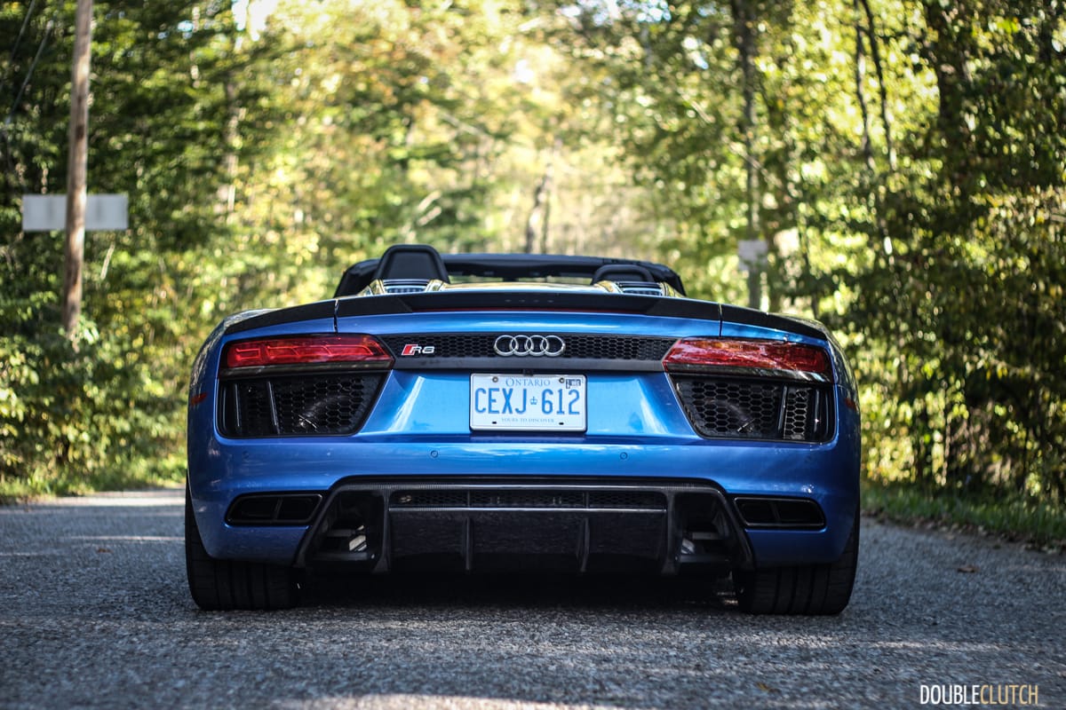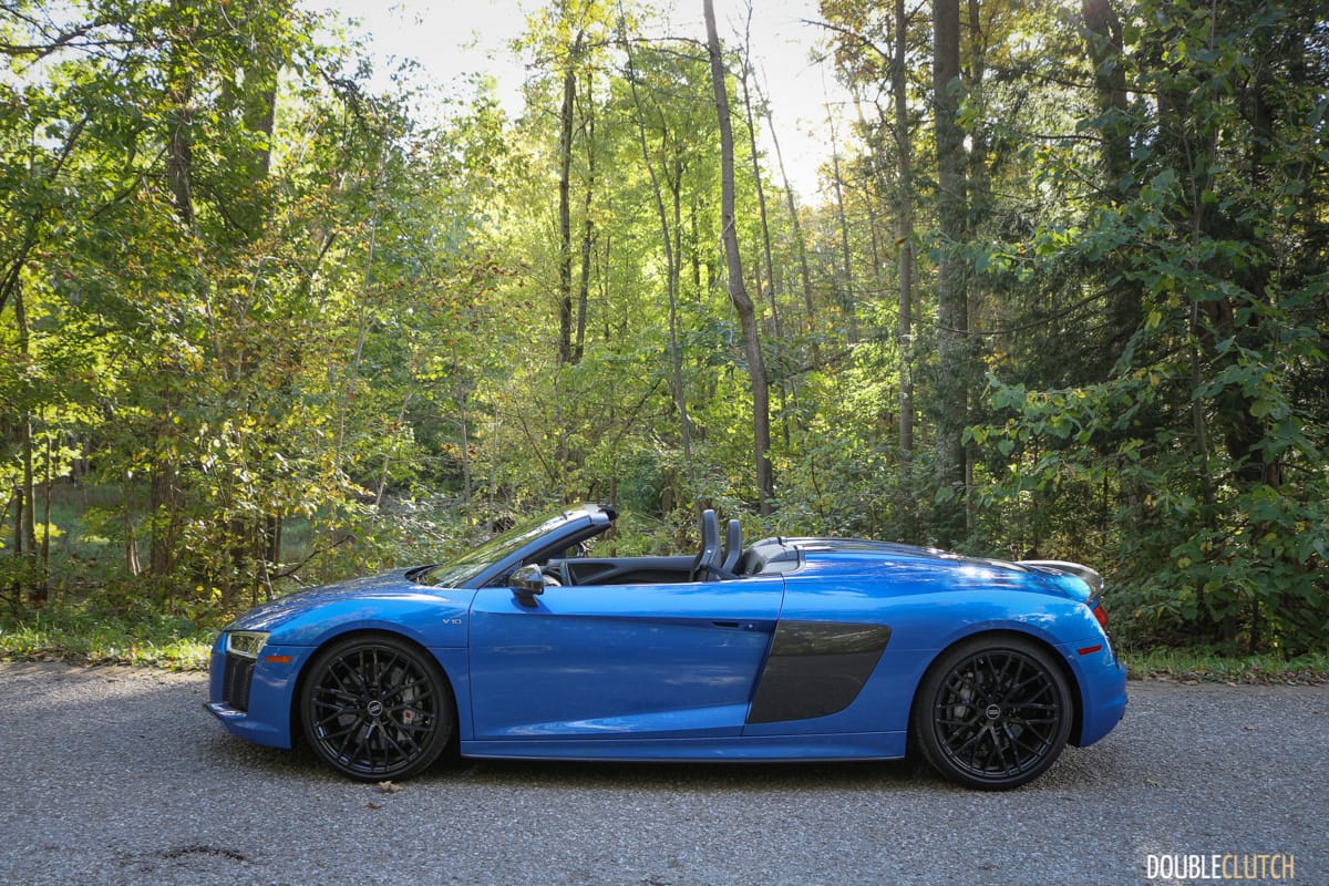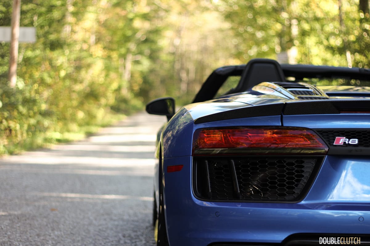 This year, Audi is offering the R8 in “RWS” form, which is the only one to be equipped with a rear-drive setup. It’s a little bit less powerful, but it’s also lighter, and starts at $163,000, an absolute bargain when considered against rivals like the Acura NSX. The R8 Coupé quattro starts at $185,000, and the Spyder at $198,100. The V10 Plus Spyder starts at $229,500, and a series of options on our test vehicle brought the total to $242,740. Highlights here include the Audi Magnetic Ride ($2,300), Bang & Olufsen sound system ($2,300), Black Optics Package ($1,350), Audi Sport Package ($1,900), and extended leather ($3,400).