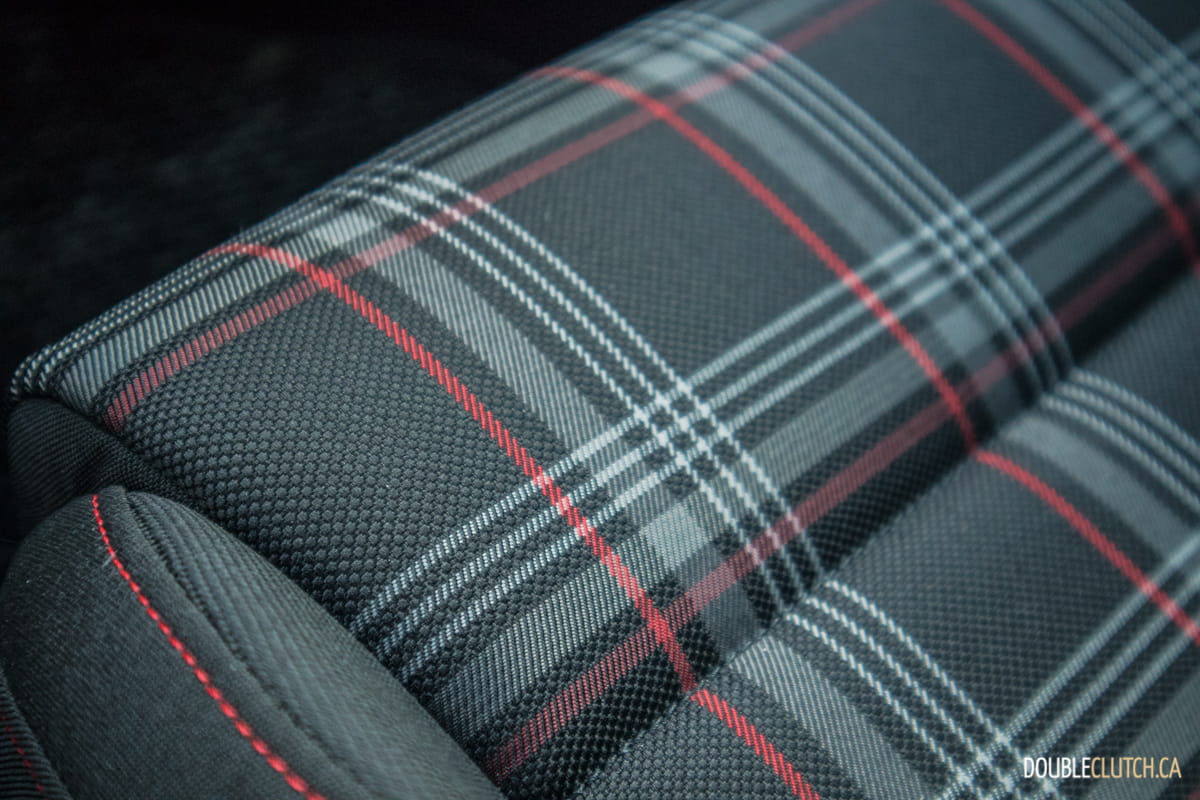 Inside, the GTI had a well-built, well-designed interior that got the job done well, if not with a little bit too much monotony on the dashboard. The “Clark” plaid pattern on the seats was a nice touch and broke up the dark interior well, but did not offer power adjustability other than the recline function. All GTIs feature dual-zone automatic climate control, an auto-dimming rear view mirror, a golf ball inspired shift knob, door sill plates with the “GTI” logo, and brushed stainless steel pedals. Rabbit Editions in particular have a Rabbit tag on the seats.