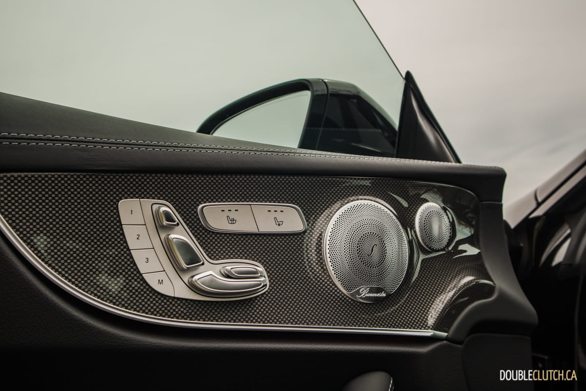 Opening the large doors wide and entering the cabin, it becomes evident that this E 53 has the latest and greatest that Mercedes-Benz has to offer. The interior of our test vehicle had a combination of leather and carbon fiber accents, with perfect fit and finish that only the Germans can deliver. The seats in this AMG application were well bolstered and had plenty of adjustment to get the perfect driving position immediately.