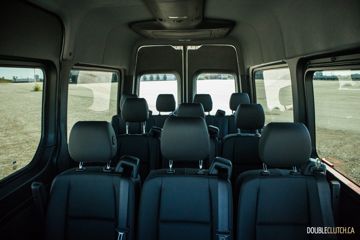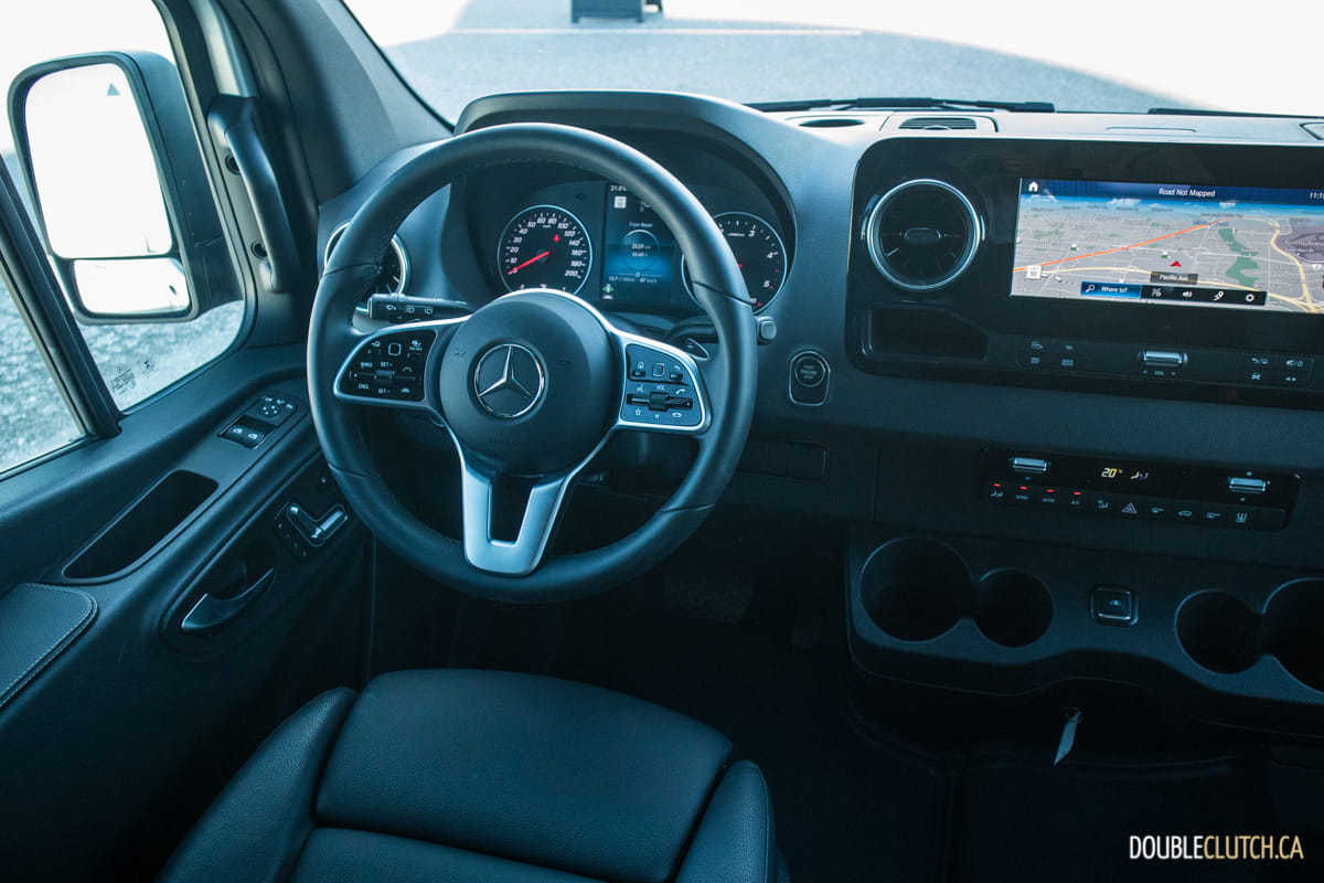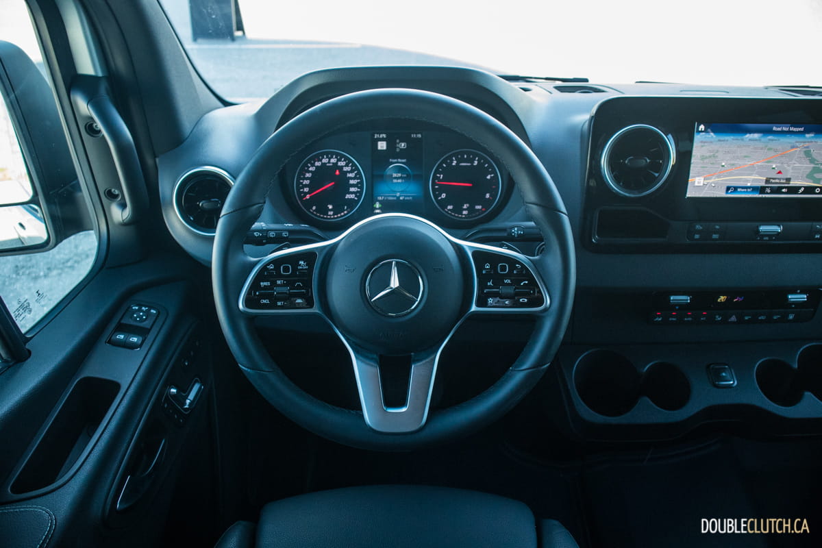 The new 2.0-liter turbocharged inline four-cylinder engine is good for 188 horsepower at 5,000RPM, and a healthy 258 lb-ft. of torque between 2,500 and 3,500RPM. We drove the vans unloaded, but even still, the engine was able to effortlessly carry the Sprinter around the roads of Toronto. It provides plenty of pep and the nine-speed 9G-Tronic automatic ensures the van is always in the right part of its powerband. What’s truly impressive is how easy this commercial van is to maneuver, despite its size, in tight parking lots and narrow laneways.