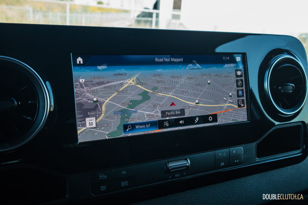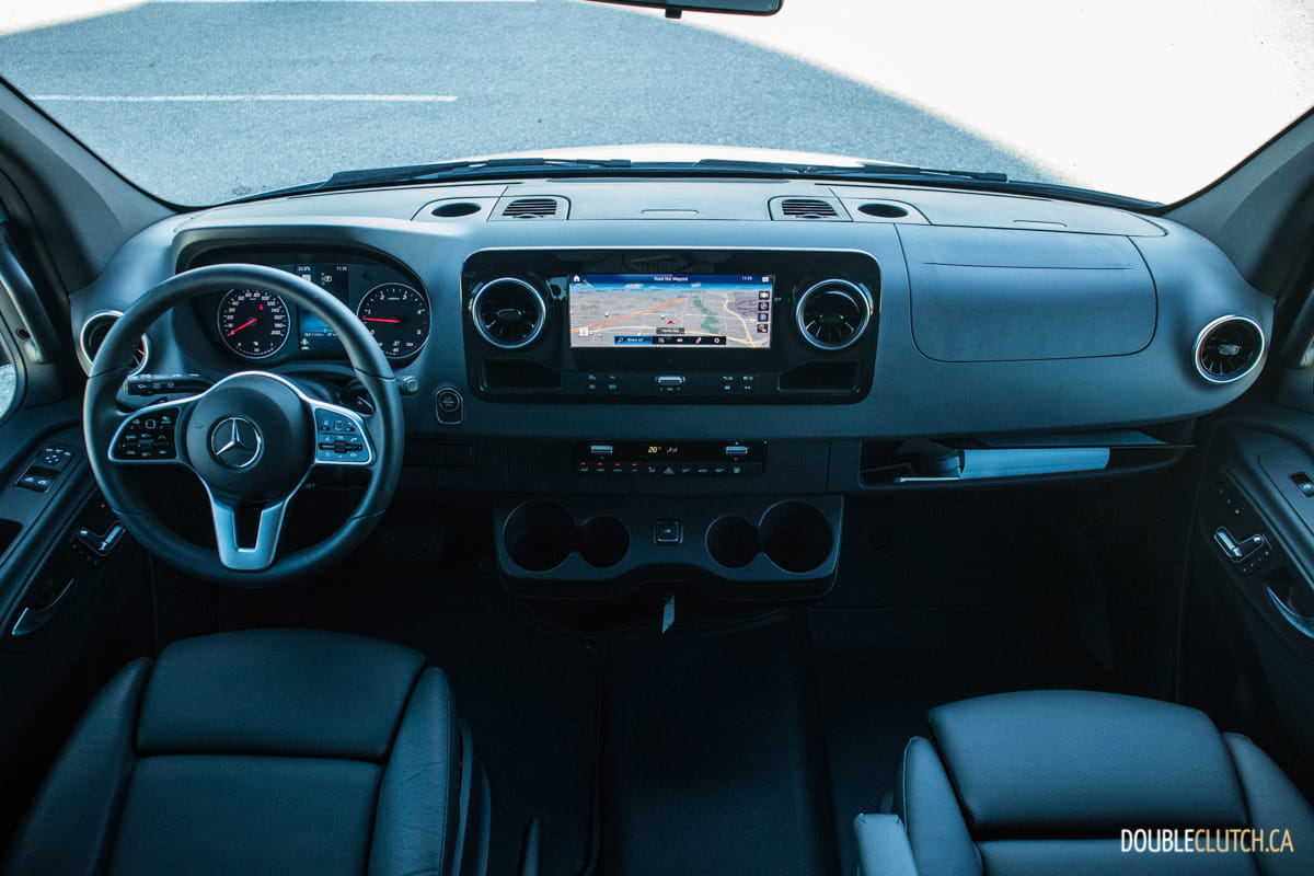 A specially adapted version of the MBUX infotainment system adds either a seven-inch or 10.25” touchscreen. While the Sprinter application doesn’t have the slick touchpad of the new A-Class (reviewed here), the voice recognition system can easily make up for it and navigation is fairly quick. Instrumentation around the cabin is fairly comprehensive, and if so desired, buyers can option a Sprinter to offer similar levels of luxury as entry-level cars and crossovers from Mercedes-Benz. Plenty of switchgear is shared with other vehicles in the lineup, and material fit and finish surpasses commercial vans from the competition.