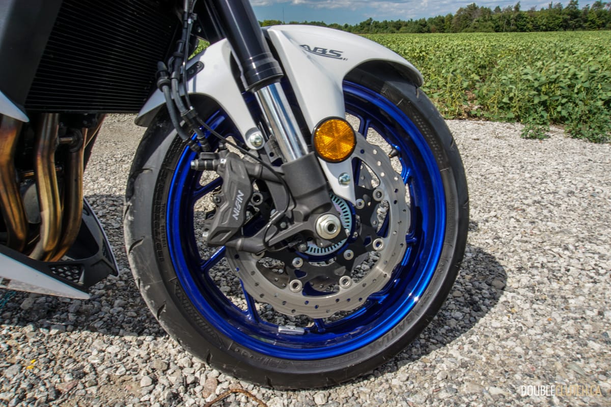The comfortable riding position combined with the upright inverted KYB preload adjustable forks makes for a superbly nimble bike, allowing you to take tight corners at such low speeds. The low center of gravity also helps in the bike’s cornering ability. We noticed little to no resistance when the bike is leaned down into a corner, and the same goes for standing it back up again on exit. You’re also able to get quite a substantial lean angle on the bike, surprising considering most naked bikes have lean angles that are hindered due to the upright riding position.
