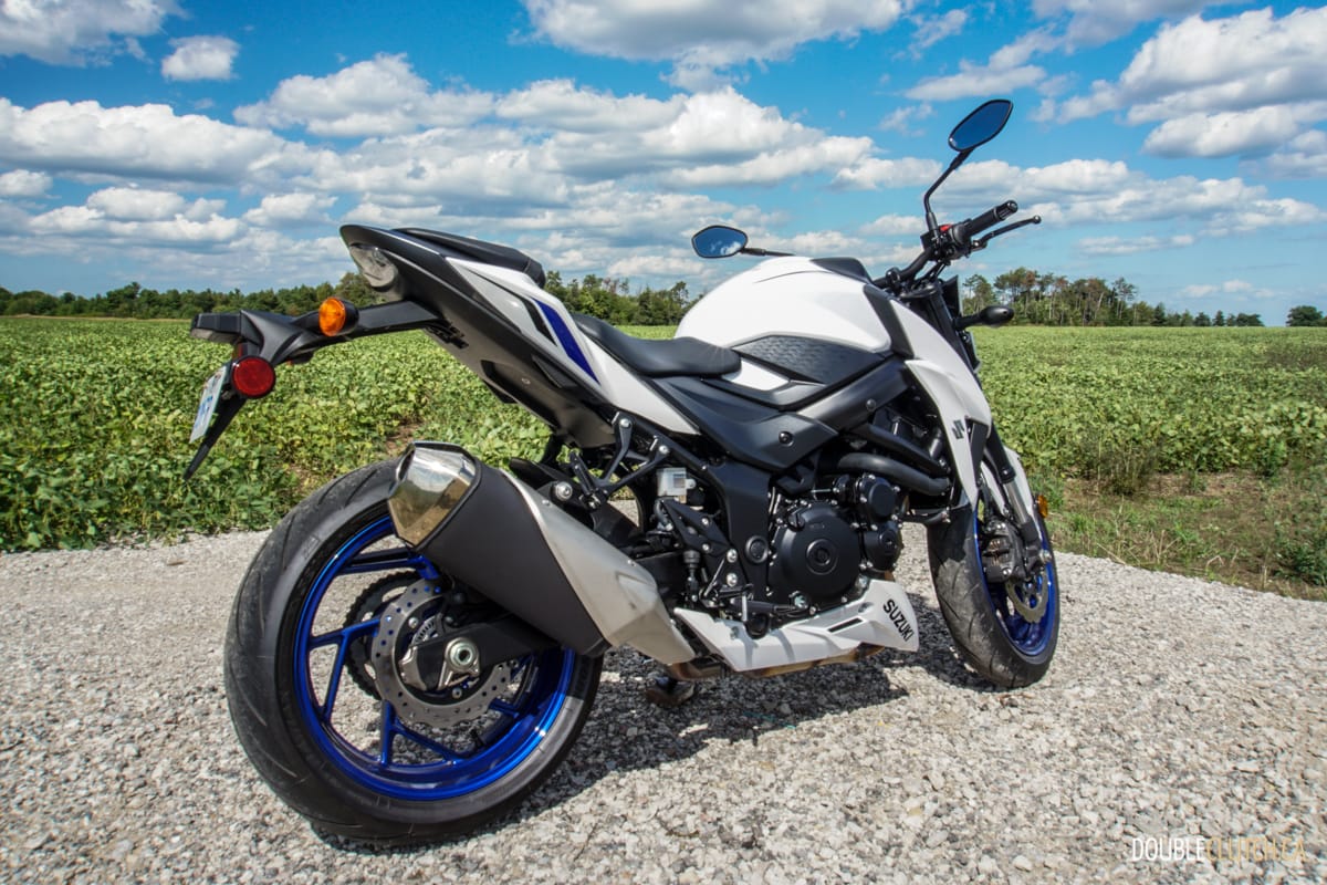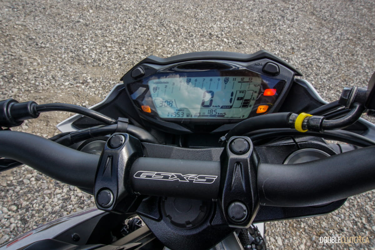With 114 horsepower on tap, the GSX-S is only 36 shy of its older brother, the GSX-S1000. It remains three-eighths of an inch taller, and for some bizarre reason, eight pounds heavier. The slightly odd riding position is not quite upright, and not forward biased like you’d see on a GSX-R. It seems to fall somewhere comfortably in between, making for an almost-familiar feeling giving even new a great amount of well-placed confidence.