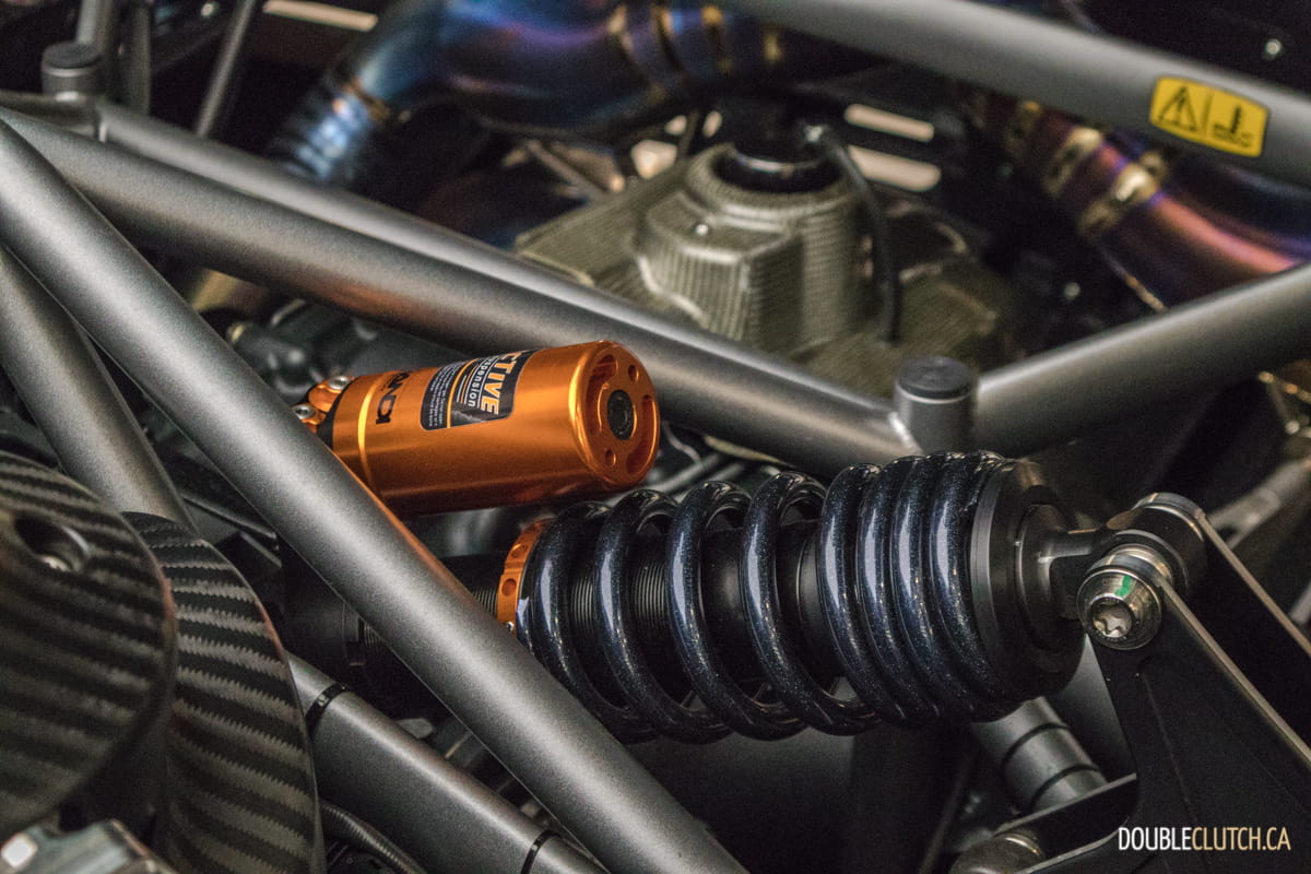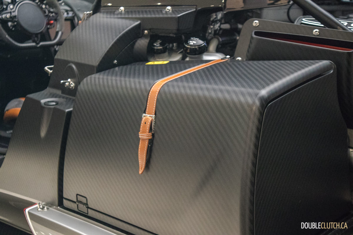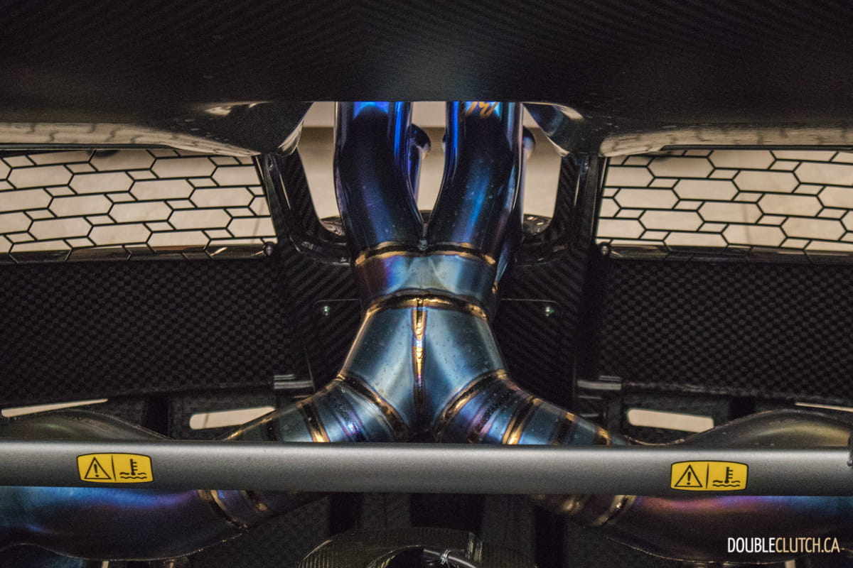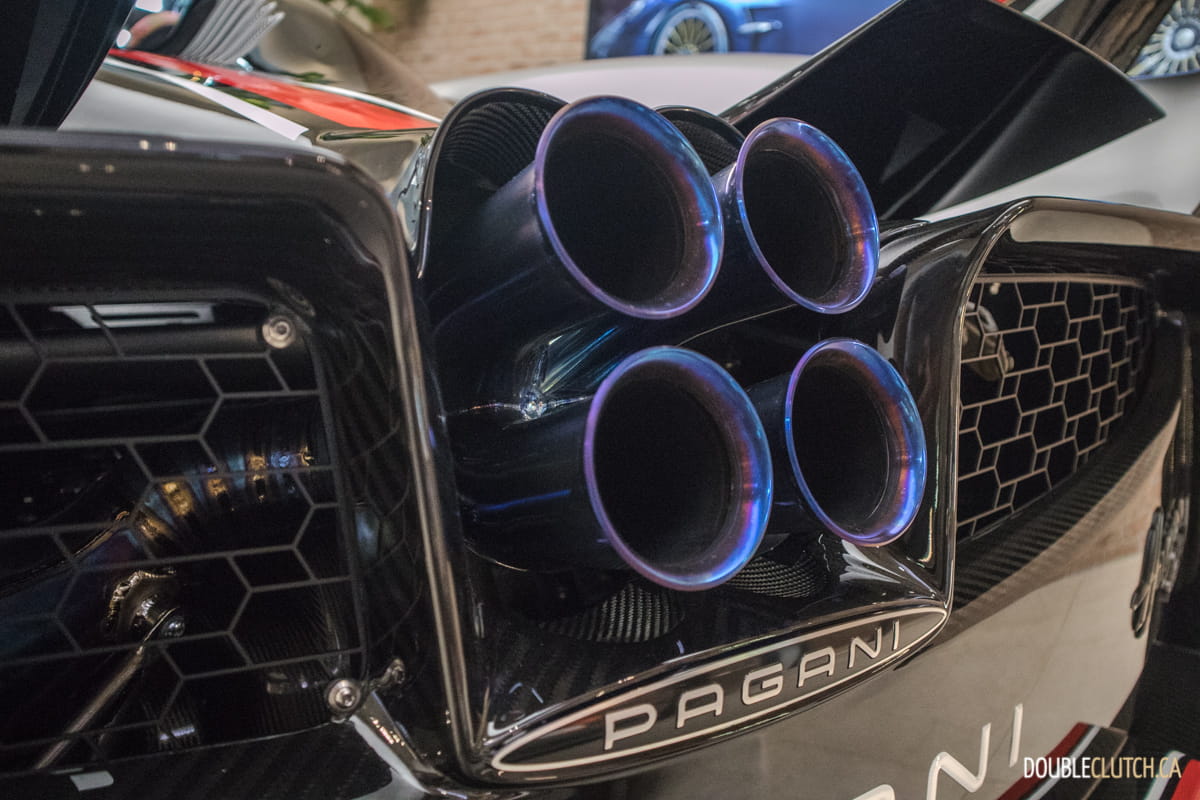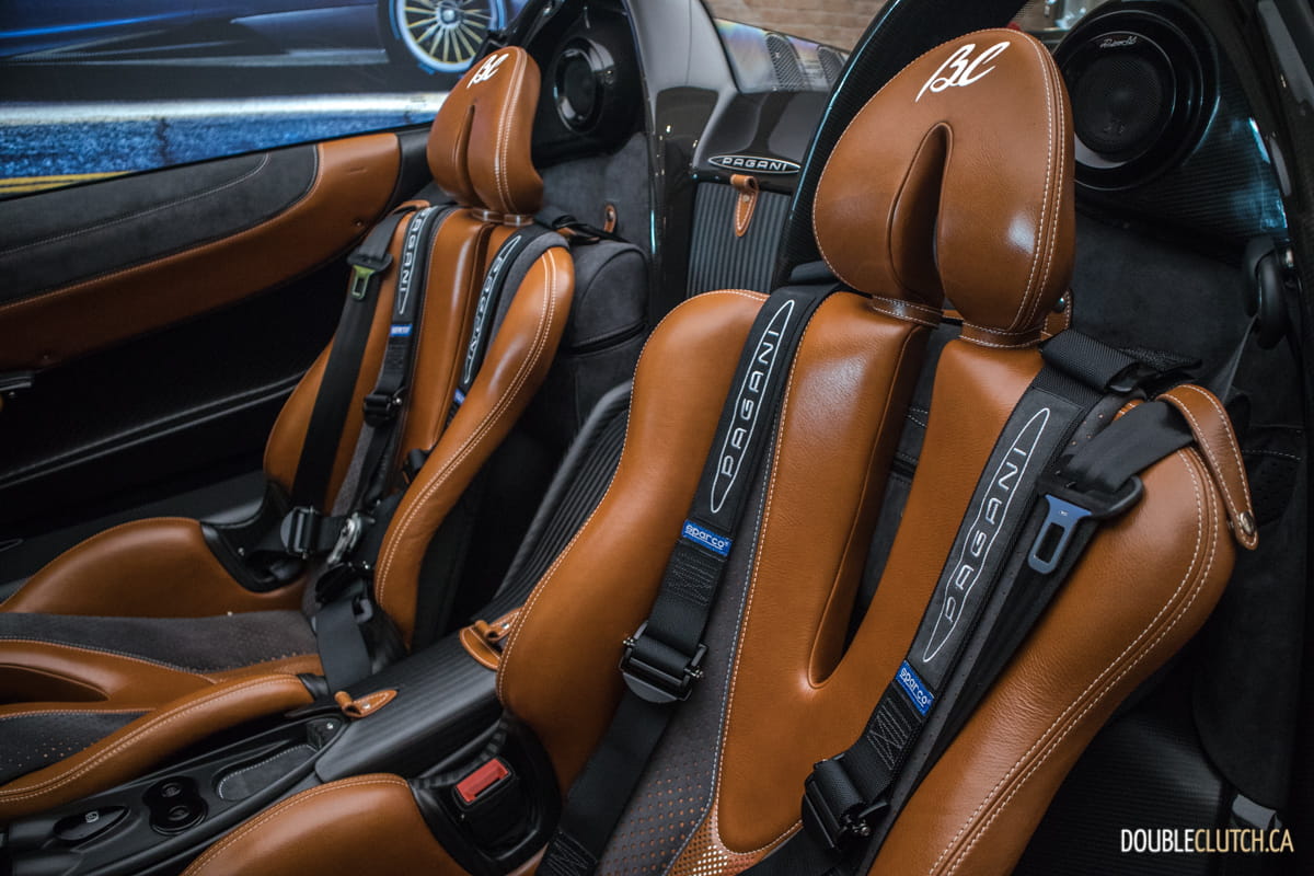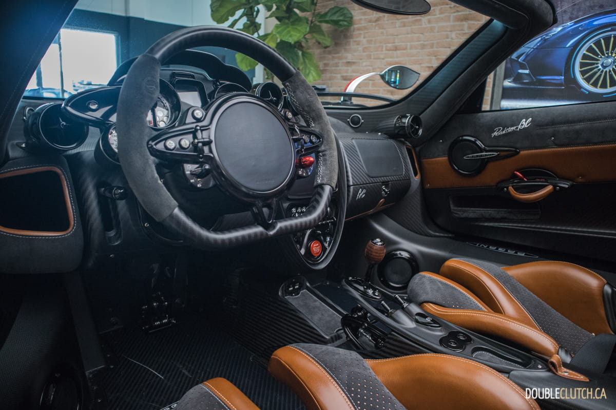 Even at first glance, it’s clear that the Huayra Roadster BC is something special. If the stripes and scoops aren’t a dead giveaway, the prominent active and passive aerodynamic features will be. The side mirrors are artfully delicate and serve in stark contrast to the brutality of the front dive planes and massive fixed rear wing. Speaking of artfully delicate, check out the the emblems of Horacio Pagani’s signature. They’re each formed out of a single chunk of billet aluminum, while visible bolts are made out of titanium and have the Pagani emblem stamped into each of them. The insane craftsmanship extends into the Huayra Roadster BC’s structure itself. Mere carbon fibre was simply not enough, so Pagani uses Carbotitanium and Carbo-Triax for the monocoque for incredible rigidity and lightness. It truly is a sight to behold.
