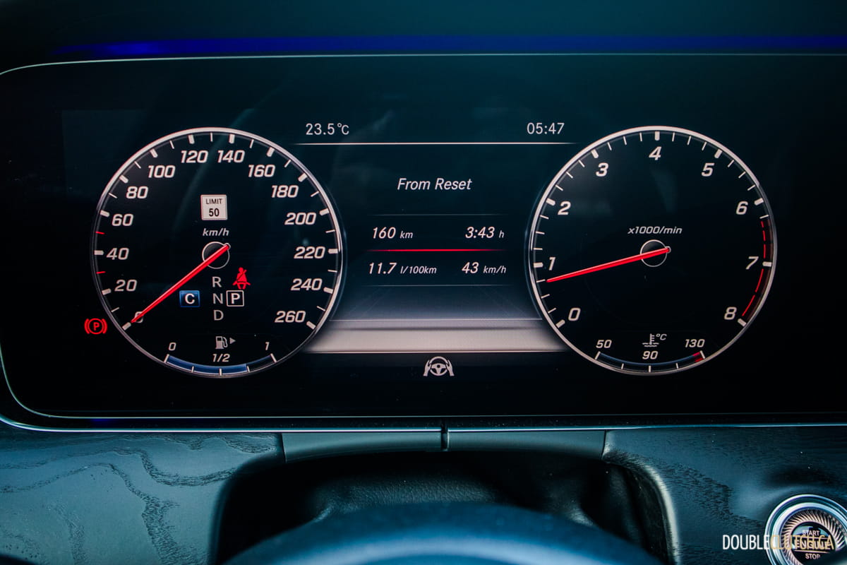 The fuel economy is rated at 12.3L/100km city and 8.9L/100km highway, for a combined average of 10.8L/100km. Our road test returned a 11.5L/100km average with a healthy mix of city driving. One longer highway run saw an indicated 8.8L/100km, surpassing the projected number ever so slightly. The E 450 requires 91-octane premium fuel, and the tank will hold a maximum of 66L.