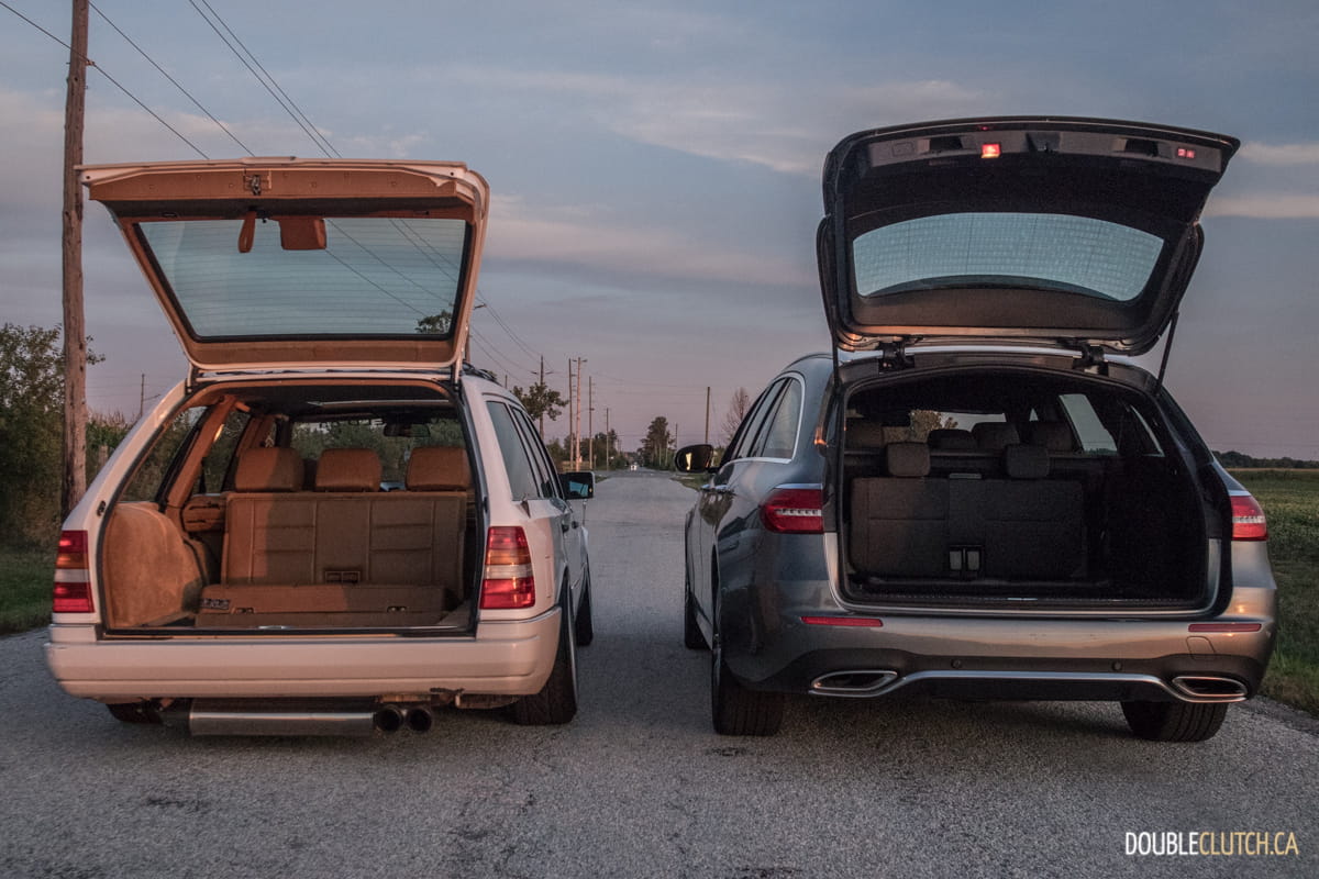 On the inside, the five-door is typical E-Class fare, with excellent materials inside and out. One heritage touch that surprised us is the presence of a rear-facing third row seat that pops out of the cargo area floor. Every E-Class Wagon since the W123 (1975 to 1986) has offered this option, and we’re glad to see it surviving the test of time. It has two three-point seatbelts and a graphic that indicates that it can support booster seats up to a certain height. This is an occasional-use seat only for smaller people, but the cool factor is very real.
