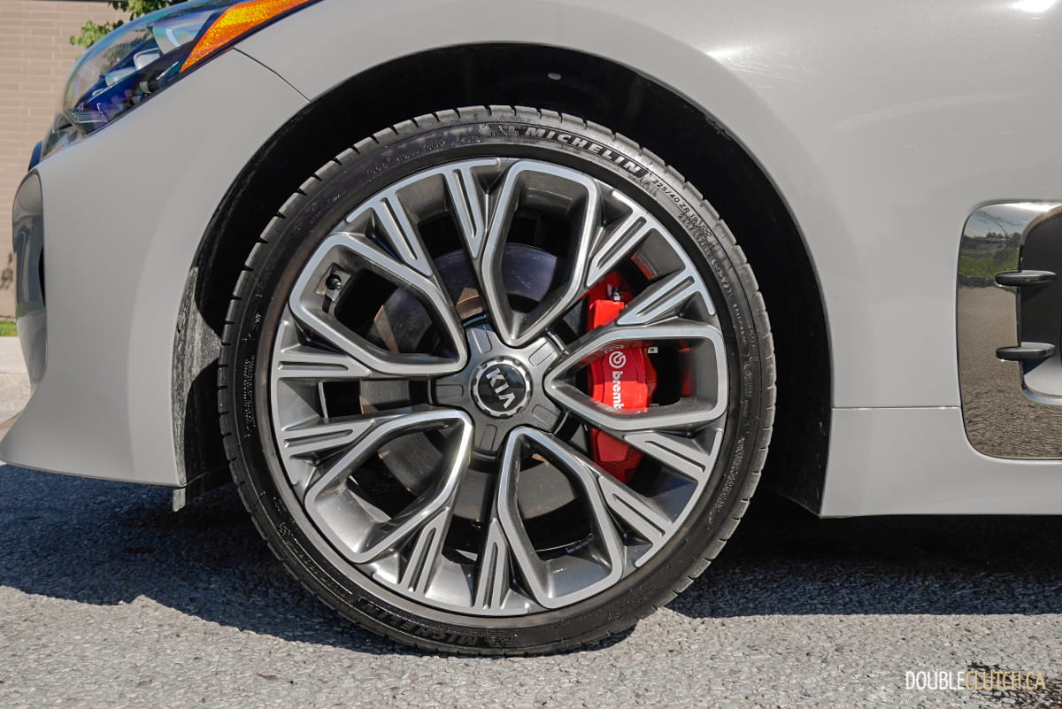 The reason for the need for a Brembo brake kit is the 3.3-litre twin-turbocharged six-cylinder engine that makes 365 horsepower at 6,000 RPM, and 376 lb-ft. of torque at 1,300 to 4,500RPM. Step on the throttle and you will be greeted with a surge of power that pushes you to the back of your seat. Our butt-dyno suggests to us that Kia might have been conservative with the power rating, and thanks to the quick shifting eight-speed Sportmatic automatic transmission, we have zero doubt that the Stinger GT can achieve the 4.7 second 0-96 km/h number.