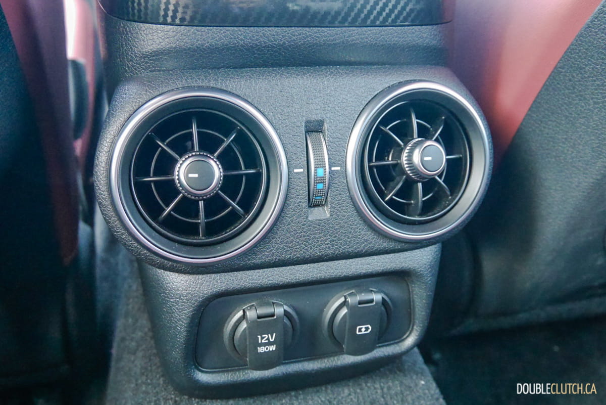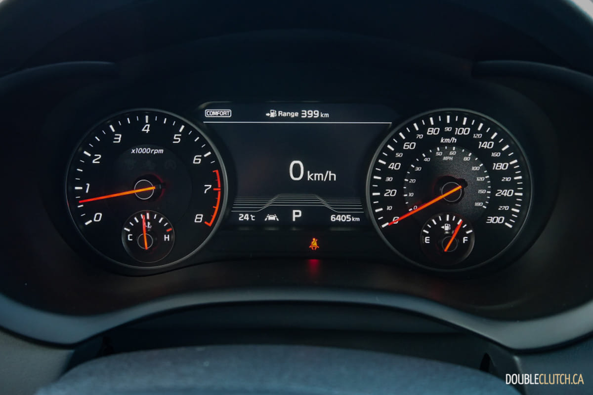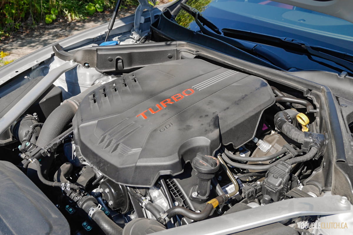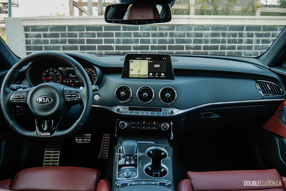 Unlike Stingers offered in the U.S., where they can be ordered with rear- or all-wheel drive, all Stingers in Canada have power routed to all four wheels. The standard Torque Vectoring Control enhances overall performance during cornering by sending power to the wheels that require traction. Drivers can select from five drive modes (Smart / Eco / Comfort / Sport / Custom) that best suit their preferred driving experience, and we observed notable differences in its adaptive dampening response.