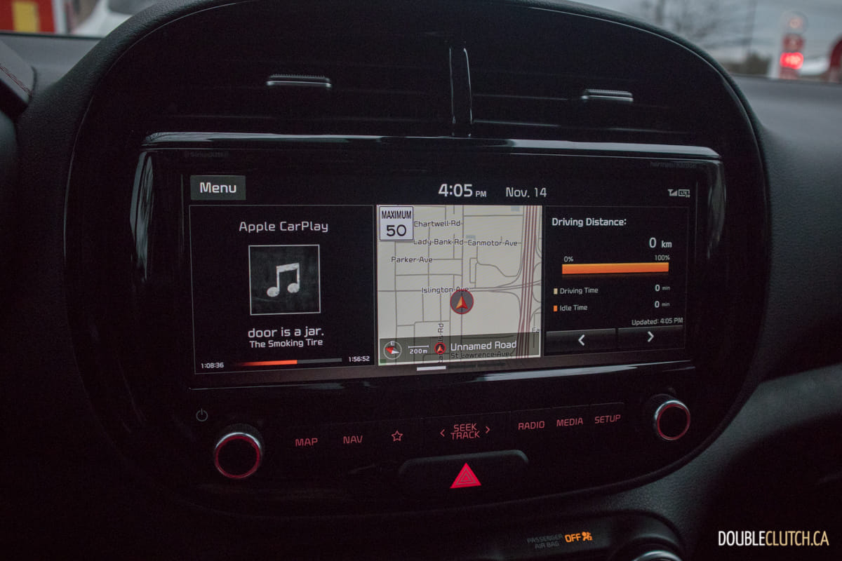 All models in Canada come powered by a recently updated 2.0-liter naturally aspirated Atkinson cycle four-cylinder that makes a respectable 147 horsepower and puts 132 lb-ft. of torque to the front wheels at 4,500RPM. All models come with a CVT, or as Kia has coined it, an Intelligent Variable Transmission (IVT). This is one of the best CVTs around, and does a very good job simulating shifts. It’s not a fast car by any means, but the Soul has good response and feels perky and agile. As is the case with any four-cylinder CVT drivetrain, passing can feel a bit laboured, but the Soul is more refined than most.
