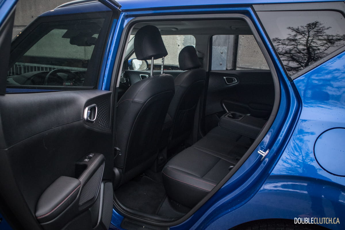 By comparison to the exterior, the interior of the Soul is a bit bland with lots of black plastic, though many in our top-of-the-line tester have been upgraded to soft-touch material. The layout is simple and logical, and there are real buttons and knobs for frequently used controls, including volume and tuner. The dash is dominated by a 10-inch touchscreen with Android Auto, Apple CarPlay and, in the case of our tester, navigation as well. Lesser trims get a smaller seven-inch screen, but functionality remains largely unchanged. The touchscreen also controls the quirkiest feature of the Soul; interior lighting on the door panels and footwells that can be set to different color themes and flashes in sync with the music and volume.