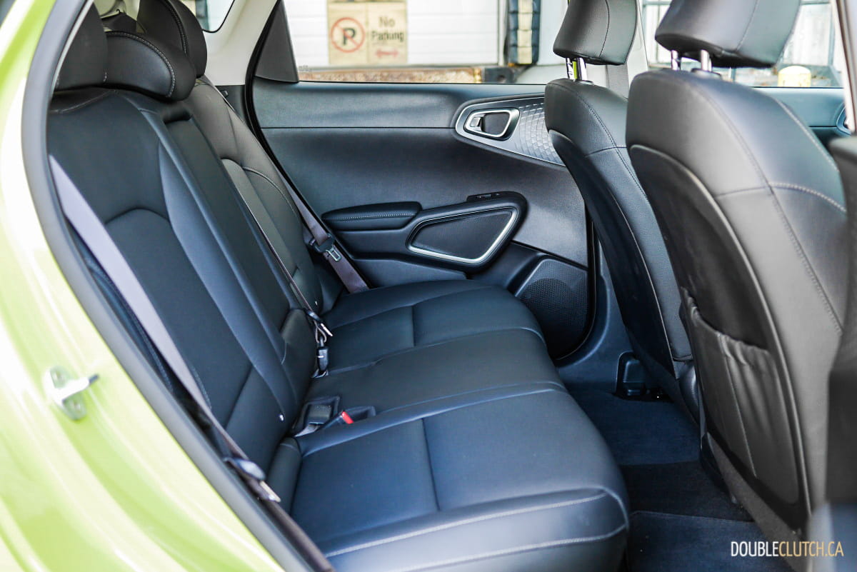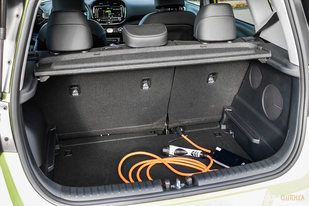 The Soul’s boxy shape means there is an abundance of interior space for all occupants. Thanks to the large windows all around, the cabin feels airy and outward visibility is excellent. The front power adjustable seats are heated and air-cooled, and are fairly comfortable even for longer trips. The driver’s seating position is quite high, and getting in and out of the vehicle is an effortless task. Standard cargo space is rated at 530-litres, bigger than that of the Chevrolet Bolt (479-liters), and the floor can be lowered to increase capacity to 663 litres, besting the Volkswagen e-Golf (645-liters).