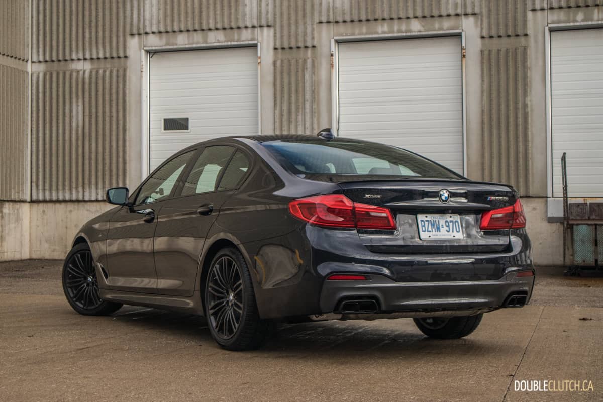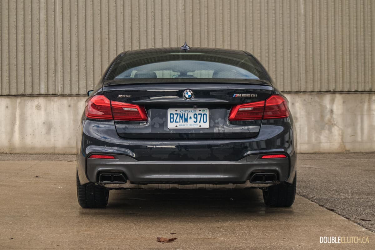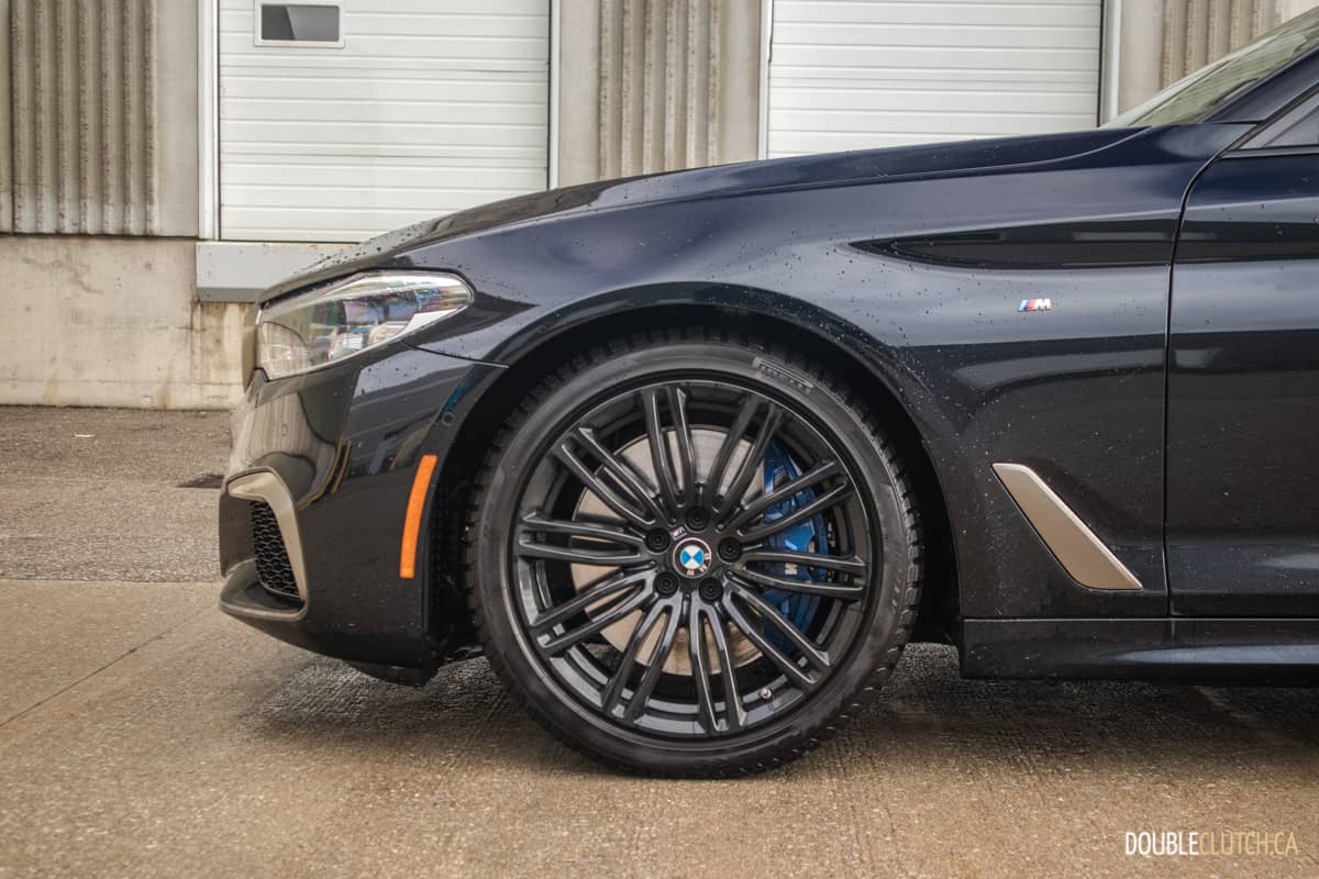 The current, seventh-generation, 5-series was launched in 2017, and its styling has remained fresh thanks to the distinctive BMW Laser Adaptive headlights and elegant lines. The M550i gets an M aerodynamics package that adds more sculpture all around, and there is a unique Cerium Grey accent on the signature front grille, front and side air inlets, and the mirror caps that allows the M550i to stand out. The black wheels equipped on our tester are also fitting for the M550i’s business looks, and are spaced just enough to let the beautifully painted M sport brake calipers to peek out and remind onlookers of its performance capability.