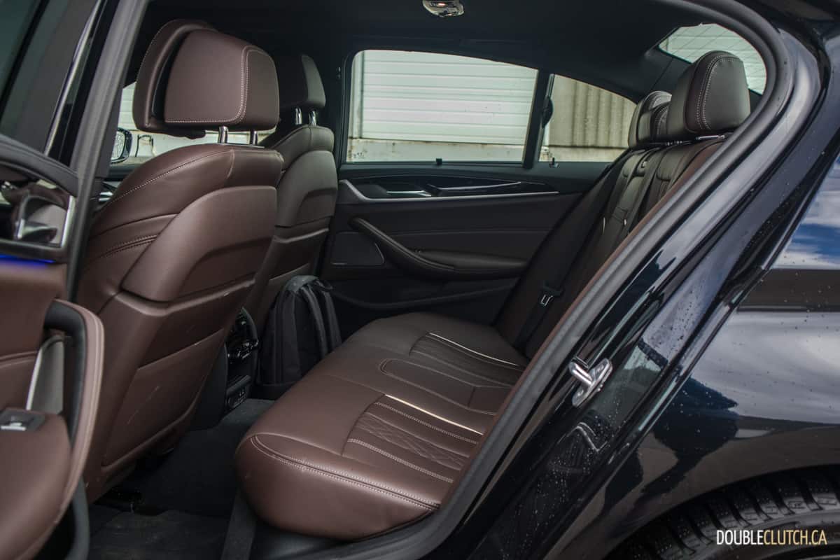Head and legroom can be considered generous for the class. The front seats favour comfort over lateral support, which is valued for the type of driving the M550i normally sees. The optional Premium Excellence Package includes an air massage function for the front occupants that’s good for reducing fatigue for long drives, however the strength of the massager leaves much to be desired. Other comfort features including soft-close doors, side and rear sunshades, ventilated seats, rear heated seats, wireless charging capability, and an excellent Harman-Kardon premium sound system are also included in the wholesome optional package.