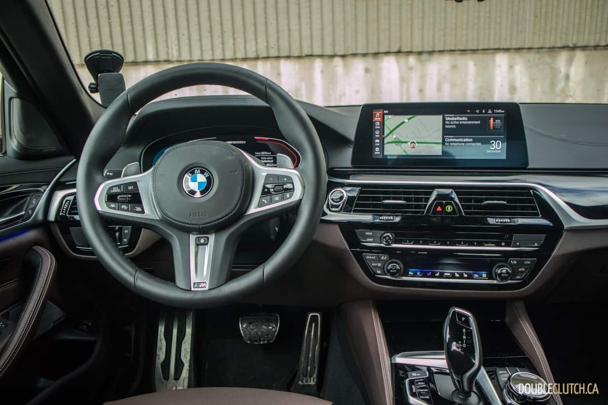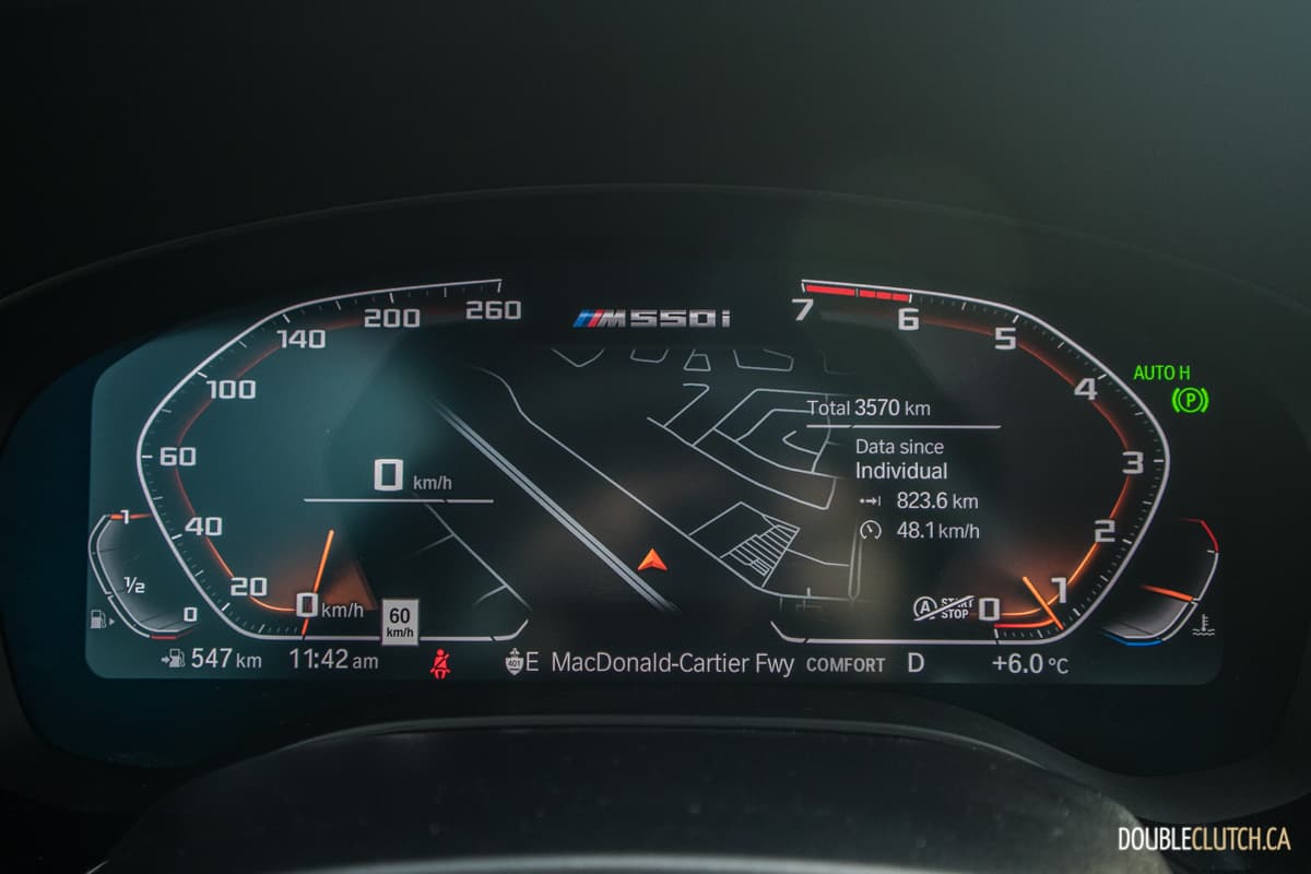 Inside the M550i is typical BMW, with excellent materials and beautiful craftsmanship throughout. The interior design language has yet to be refreshed to follow the one we observed in the latest X5 (reviewed here), and while we would have liked to see the gorgeous CraftedClarity glass interior bits get offered in the M550i, the tried and true layout is simple and elegant. BMW’s iDrive infotainment remains one of our favourites for being easy to learn and use. It accepts commands using the rotary dial or by touch, and the screen resolution is vivid. The futuristic digital instrument cluster features a fighter jet style speedometer and tachometer; however, readability takes a hit as a result. Fortunately, the optional Head-Up Display is excellent in displaying a wide variety of vital information with great clarity even in daylight settings.