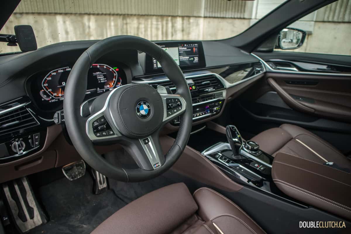 The 2020 BMW M550i xDrive’s 4.4-litre turbocharged V8 engine is rated at 523 horsepower, up 67 ponies from last year’s model, and peak torque is increased by a whopping 73 lb-ft. to 553, matching that of the almighty M5 Competition (reviewed here). The power increase is notable as it puts the M550i at a huge advantage over all of its peers; the Mercedes-AMG E53 4MATIC+ (reviewed here) outputs 429 horsepower, the Audi S6 makes 444, and even its closest competition, the Lexus GS-F, still gives up 56 horses to the Bavarian super saloon.
