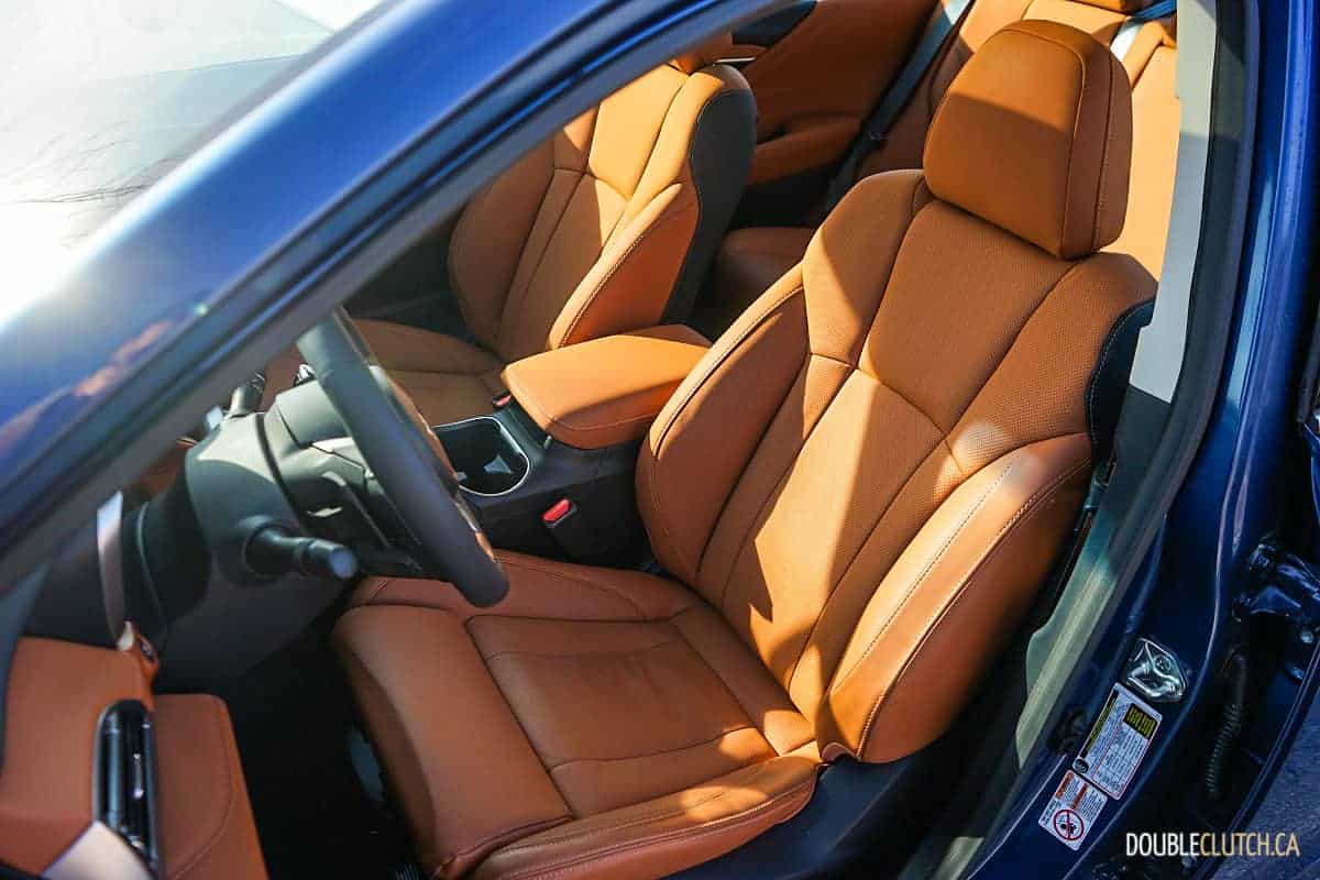 The interior of the Subaru is very spacious and comfortable. Driving position is excellent with lots of adjustability in both the seats and steering column so you can feel connected to the car. Rear leg room is adequate but definitely not class leading. You can fit three adults in the back with reasonable comfort for a short trip. Trunk space is excellent with a healthy 428-liters of cargo volume and a wide opening for easy loading.