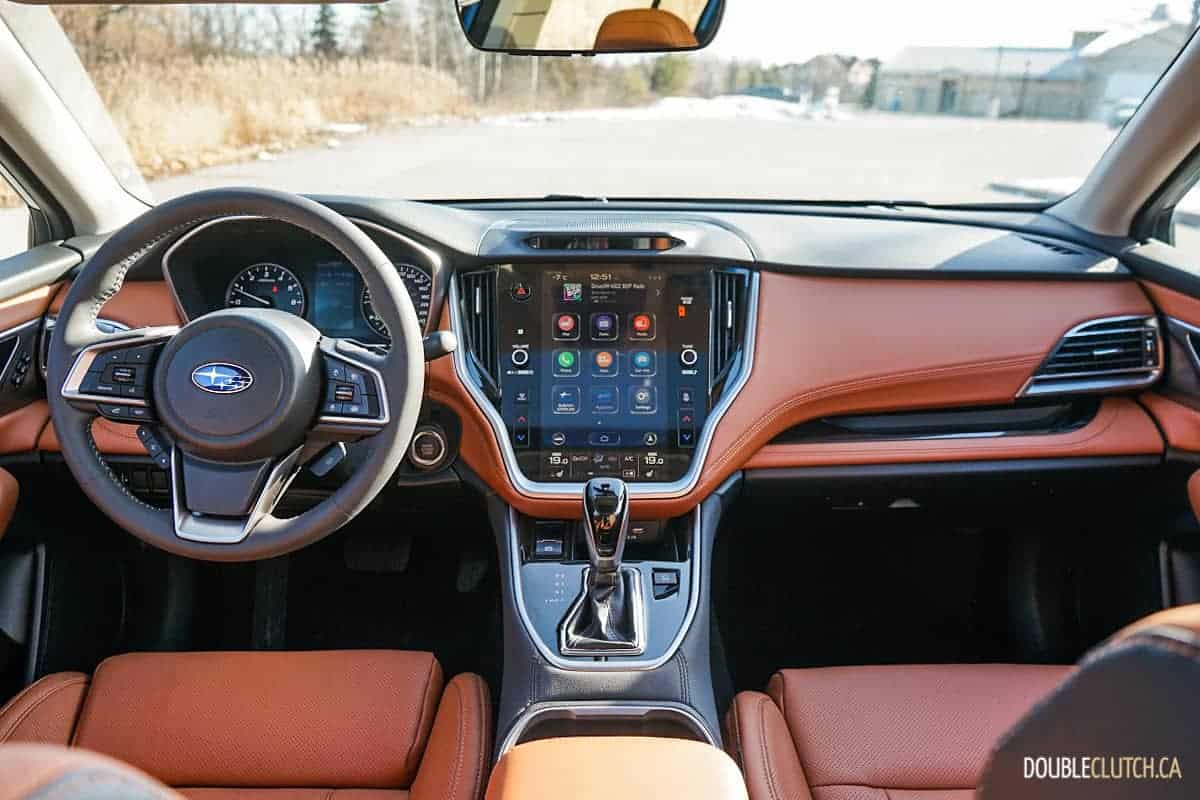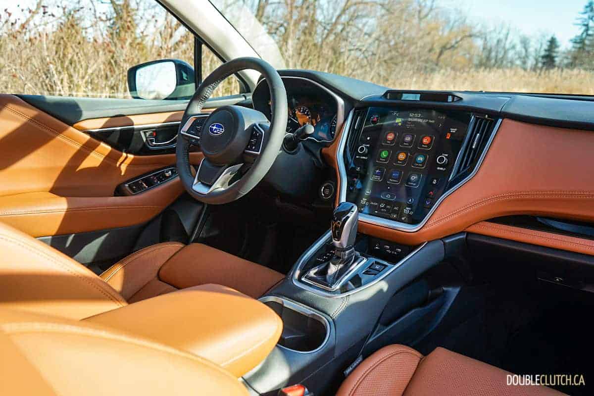 The reason behind going from a 3.6-liter flat six cylinder to a four-cylinder turbo is naturally efficiency related. By employing the turbocharged engine, the Legacy is able to achieve impressive fuel ratings for its performance. It is rated at 9.9L/100km city and 7.3L/100km highway, for a combined 8.7L/100km consumption rating. During our week of testing we were able to observe an average consumption of 10.9L/100km; still very good considering the cold conditions and wholly city driving.