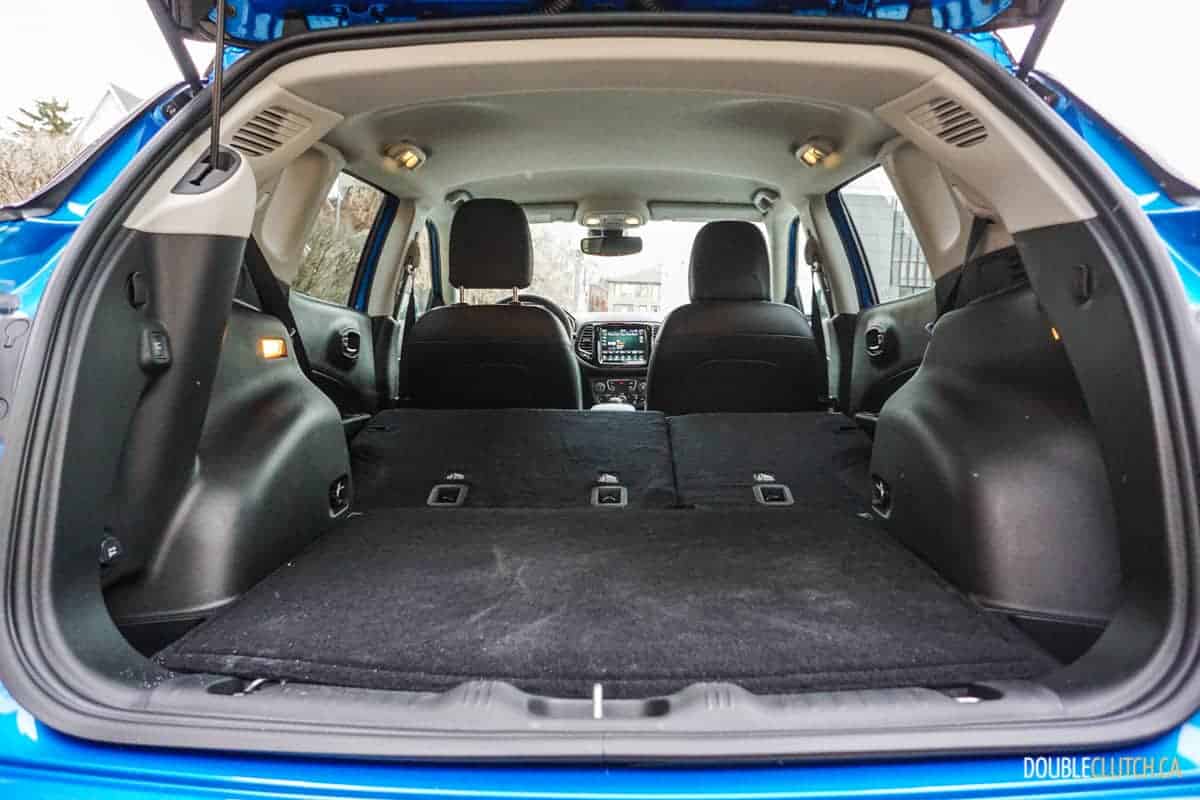 Redeeming the shortcomings is the Compass’ interior. While some plastics are visible and expected for the $23,808 base price point, the Jeep’s interior is one of the better examples in this class. A sporty three-spoke steering wheel has a thick rim and is nice to hold, and most of the major controls are right at the driver’s fingertips. The driving position is pretty good, and the comfortable front seats offer decent adjustability. Two adults will be fine, if not a bit snug, in the rear seats, though don’t plan to haul five outside of short commutes. Behind the rear seats, the Compass will swallow 642-liters of cargo, and this expands to 1,693-liters if the rear seats are folded down.