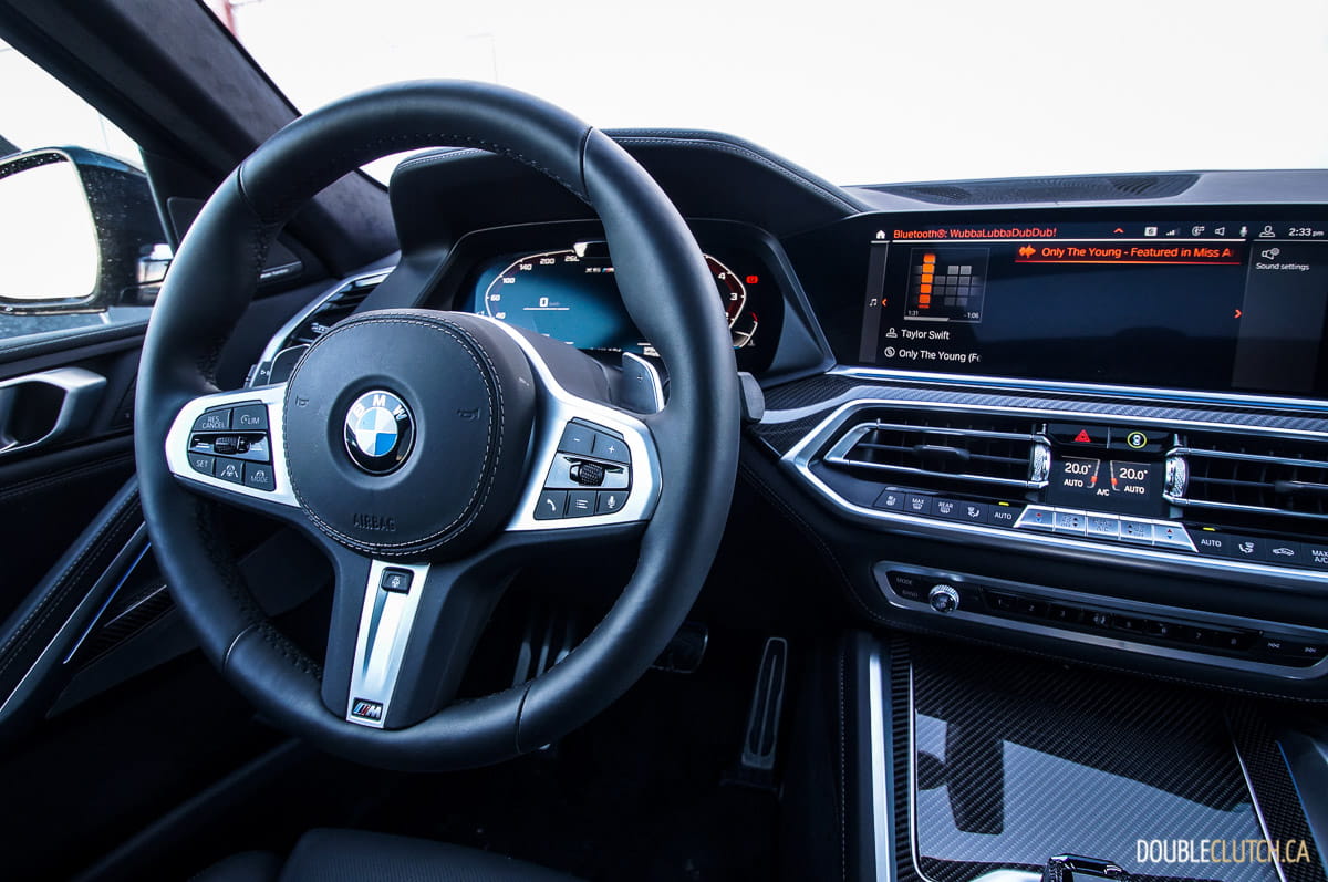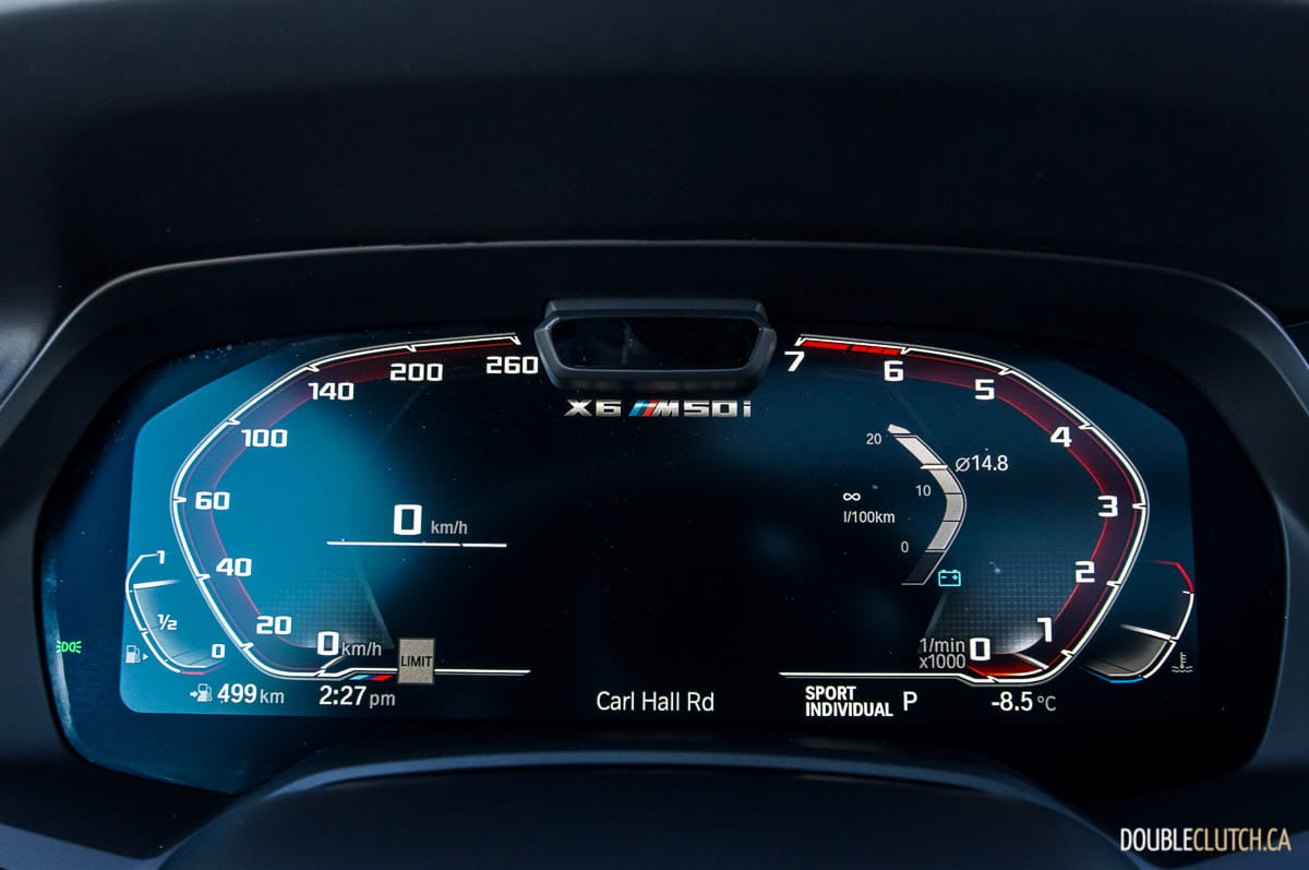 In the fuel economy department, BMW’s Canadian nominal figures come in at 14.5L/100KM in the city, and 10.7L/100KM on the highway. Observed economy came in at 12.4L/100KM in mostly highway driving, but this also included a significant amount of snow and wintery weather that tend to put a damper on real-world results. What’s neat, however, is that the X6 M50i manages to do all of this with only midgrade fuel required at minimum, although a premium octane of 91 or better is still recommended. Tank capacity is 83 litres.